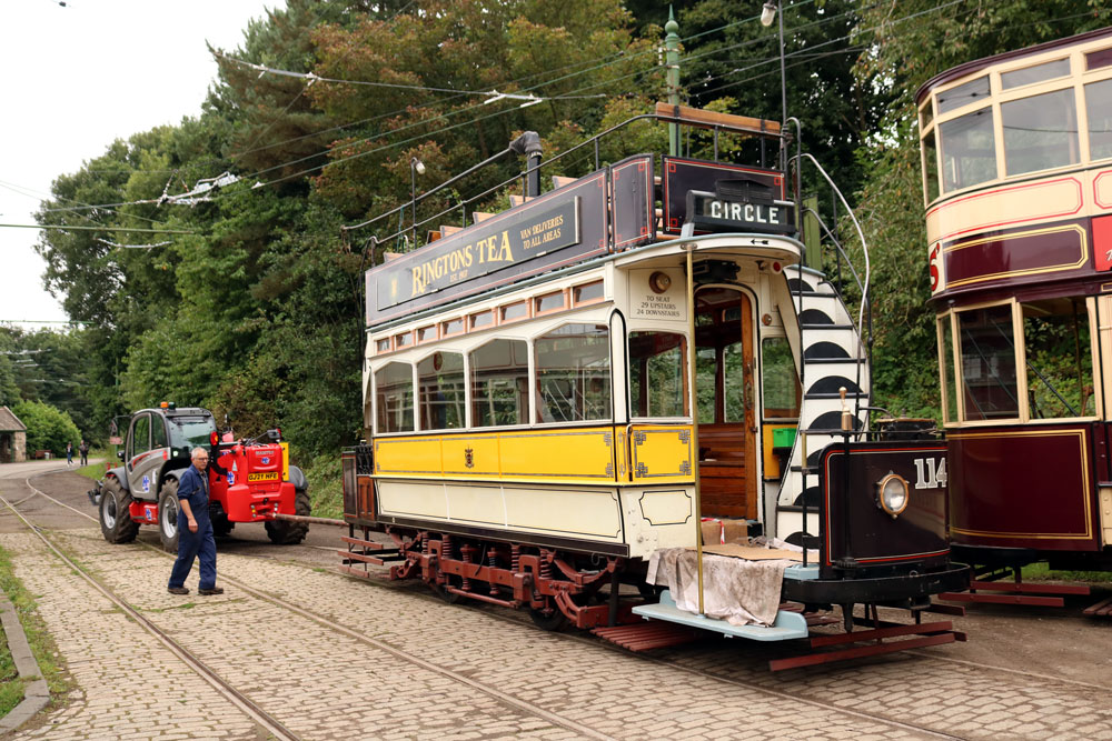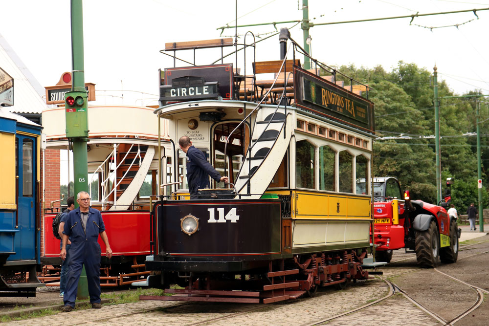 After very nearly 18 months of no public tram services at Beamish limited operation restarted on Saturday 4th September 2021. Running from Foulbridge (by the tram depot) to the Town via the Entrance and Pockerley one tram is in service operating every 40 minutes. Originally operating at weekends only, weekday operation resumed from Monday 13th September. So far three double-deckers have run in service: Sunderland 16, Blackpool 31 and Sheffield 264 while Oporto 196 is still being used for driver training. In this collection we see images of all of those plus on 13th September there was a shunt at the depot which saw Newcastle 114 shunted over the pit on road 3 for a start to be made on its motor being refitted. |