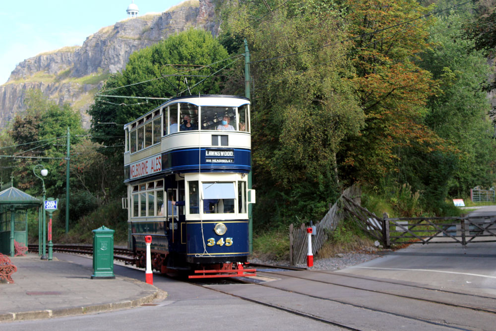 Shortly after 1030 and the first service trams head up the line. The first tram was Leeds 345 - as part of its 100th birthday celebrations - and we see it just passing the Bandstand.