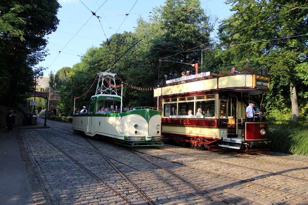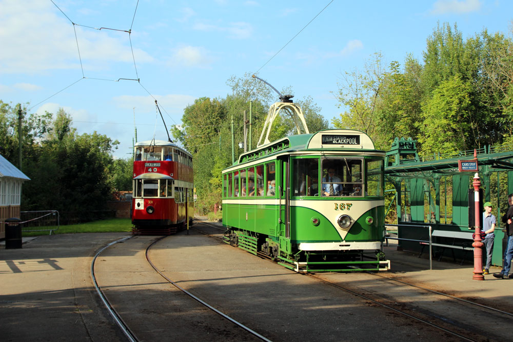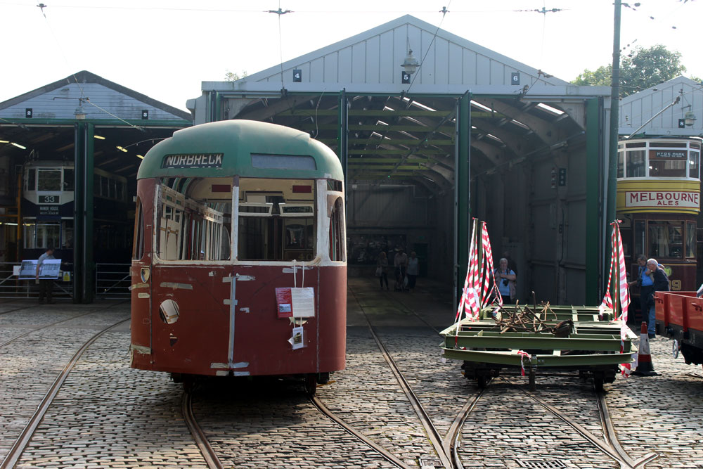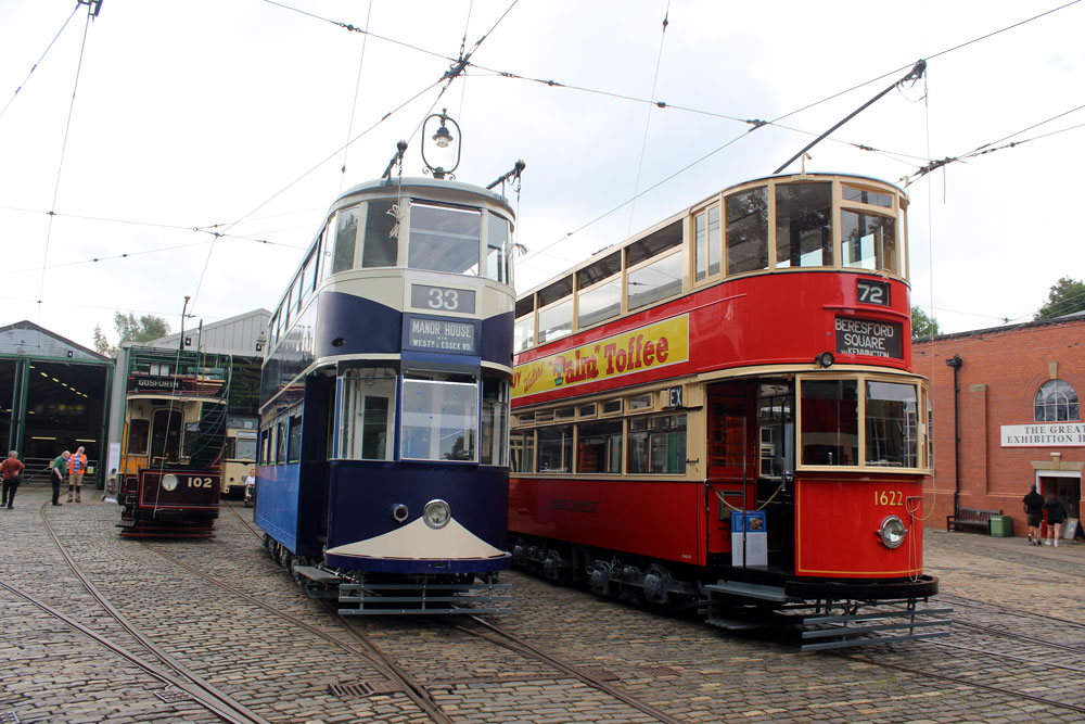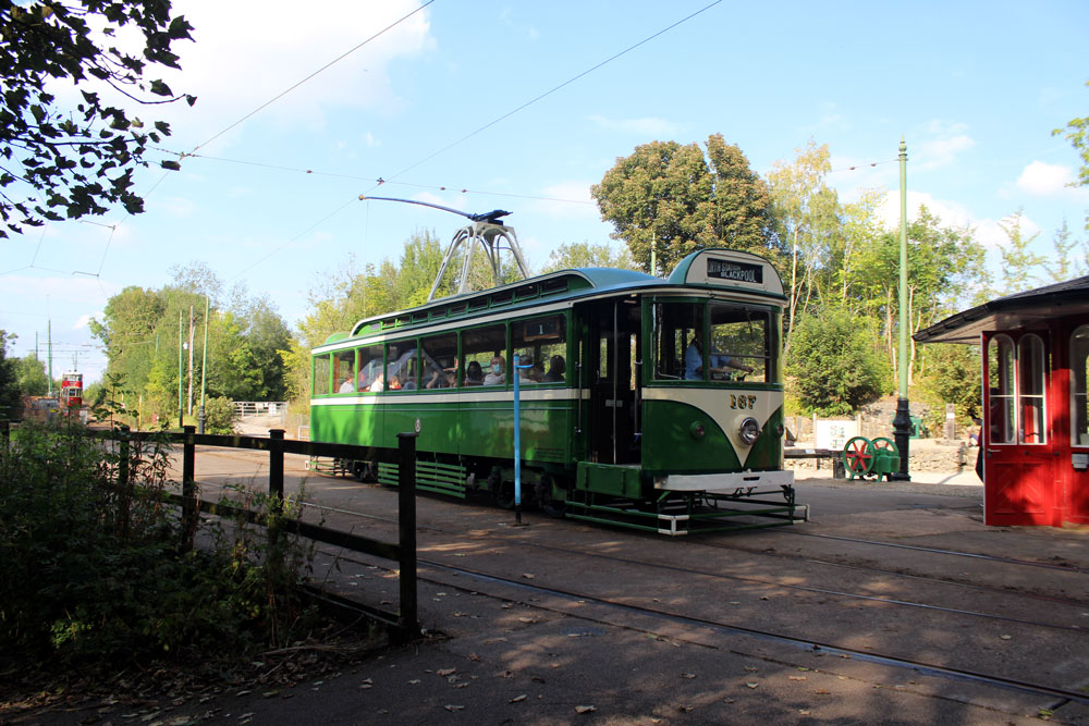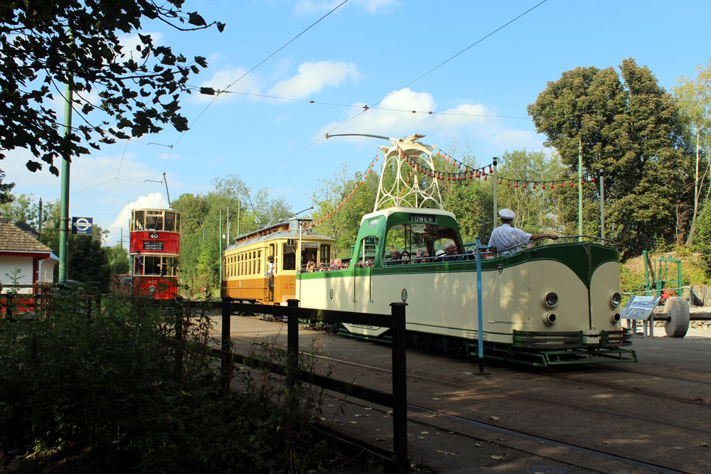 Saturday 18th September 2021 saw the return of Tram Day to the Crich Tramway Village following a two year gap. As always this event saw an intensive service of electric passenger trams along with Works Cars on demomstration runs and various photo line-ups on the depot fan. This year the theme of the photo line-ups was Workshop Projects with three different line-ups during the day. The morning saw the Current Workshop Programme with London County Council 1, Newcastle 102 and London Transport 1622 featuring while at lunchtime it was the Winter Workshop Programme which included Blackpool 40, Blackpool & Fleetwood 40 and London United Tramways 159. Finally in the afternoon it was the Future Workshop Programme which included Blackpool 298 and its new underframe positioned alongside fellow Blackpool Brush Car 630. In total 14 passenger trams ran in service with Cardiff 131 and Croydon Tramlink 058 flying the flag for the Works fleet while Blackpool 166 and London Transport 1622 were both out on test during the event ahead of their returns to service.