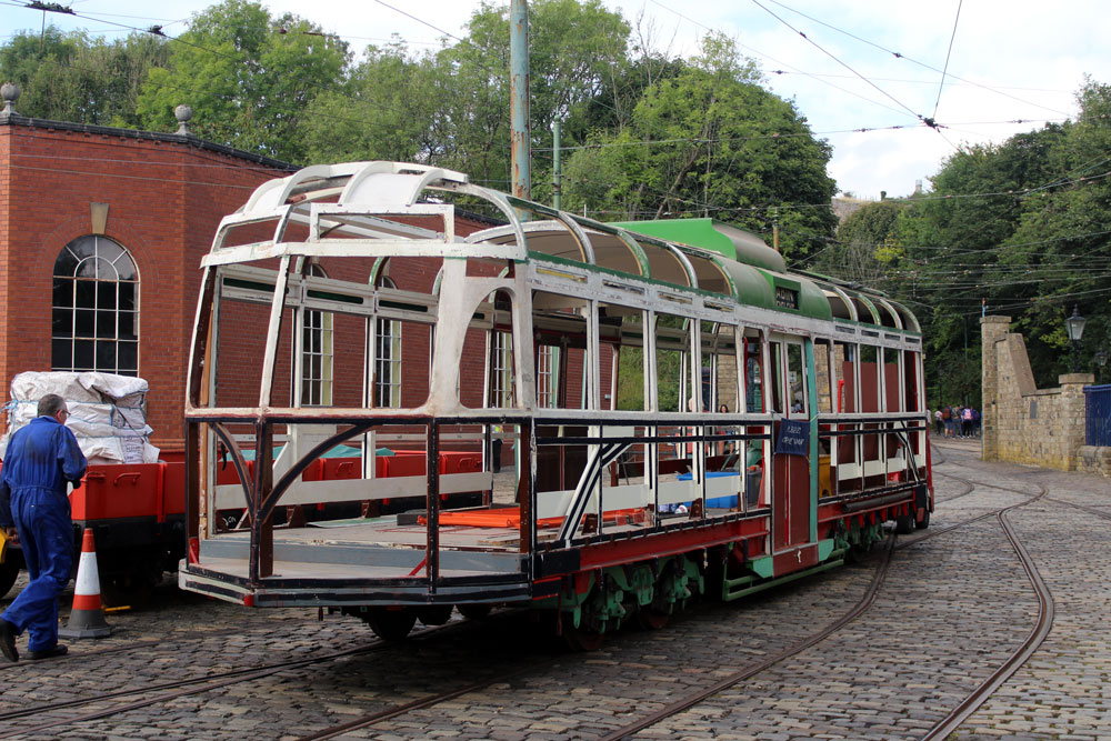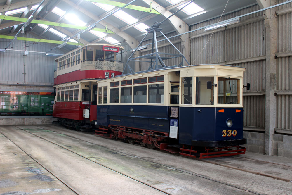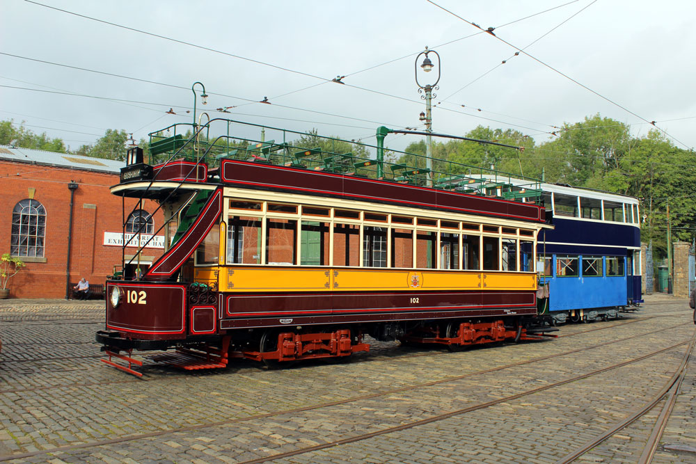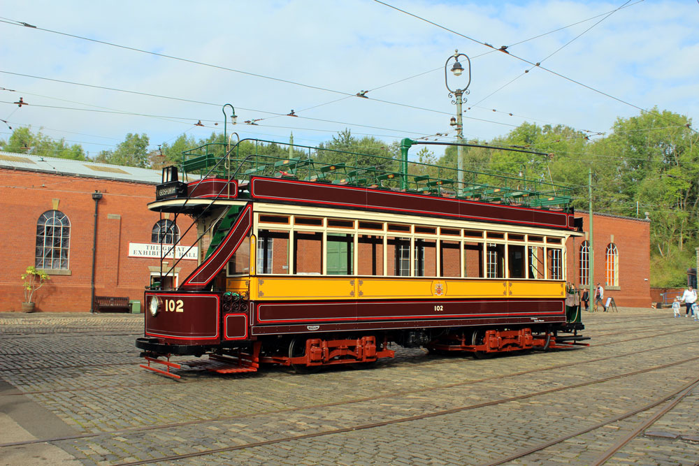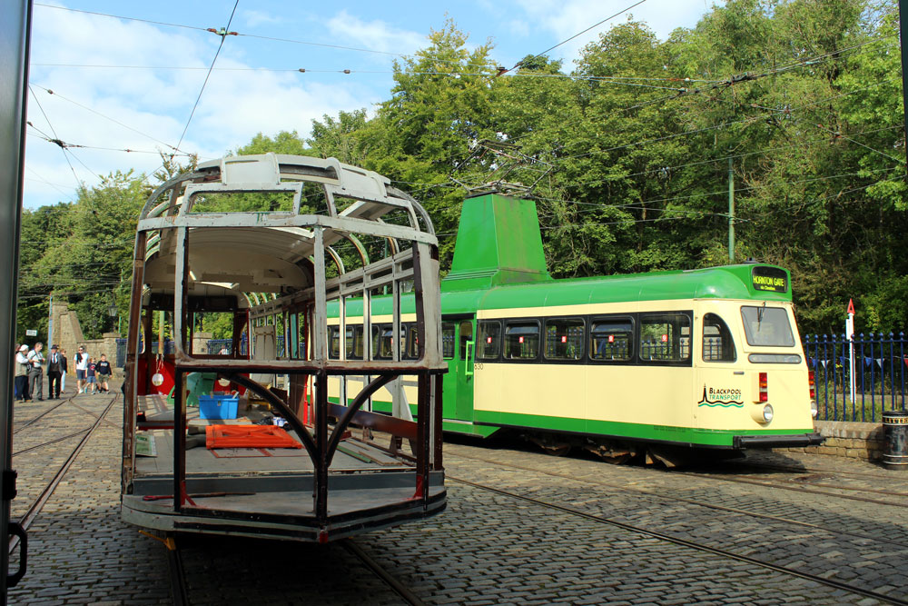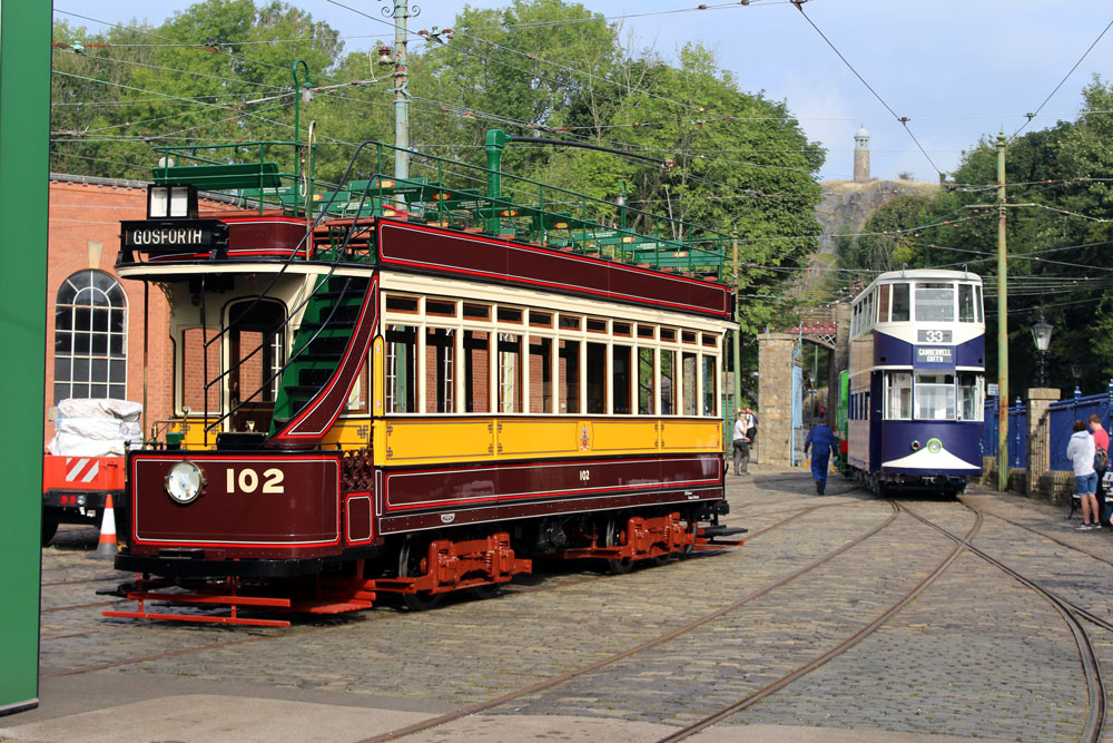 Saturday 18th September 2021 saw the return of Tram Day to the Crich Tramway Village following a two year gap. As always this event saw an intensive service of electric passenger trams along with Works Cars on demomstration runs and various photo line-ups on the depot fan. This year the theme of the photo line-ups was Workshop Projects with three different line-ups during the day. The morning saw the Current Workshop Programme with London County Council 1, Newcastle 102 and London Transport 1622 featuring while at lunchtime it was the Winter Workshop Programme which included Blackpool 40, Blackpool & Fleetwood 40 and London United Tramways 159. Finally in the afternoon it was the Future Workshop Programme which included Blackpool 298 and its new underframe positioned alongside fellow Blackpool Brush Car 630. In total 14 passenger trams ran in service with Cardiff 131 and Croydon Tramlink 058 flying the flag for the Works fleet while Blackpool 166 and London Transport 1622 were both out on test during the event ahead of their returns to service.