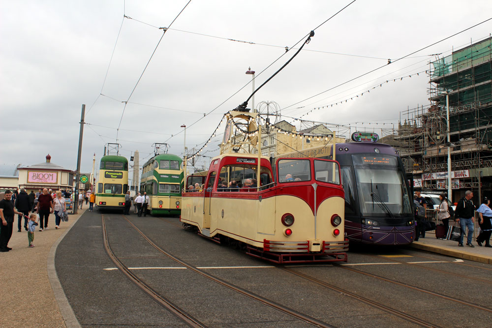 The weekend of Saturday and Sunday 26th September saw the return of hop-on/hop-off Heritage Tram Tours in Blackpool for the first time since March 2020 with a special event celebrating the 136th anniversary of the tramway. With six trams in service on each day running to a timetable across the whole tramway we see the various heritage trams which were in operation during the weekend which included rare daylight outings for illuminated pair the Western Train and the Frigate. The weekend was also due to see the return to service of Balloon 700 after a repaint into Wartime Green and Cream but although it was out on the Prom on the first day very briefly a fault prevented it from running on the Sunday as planned.