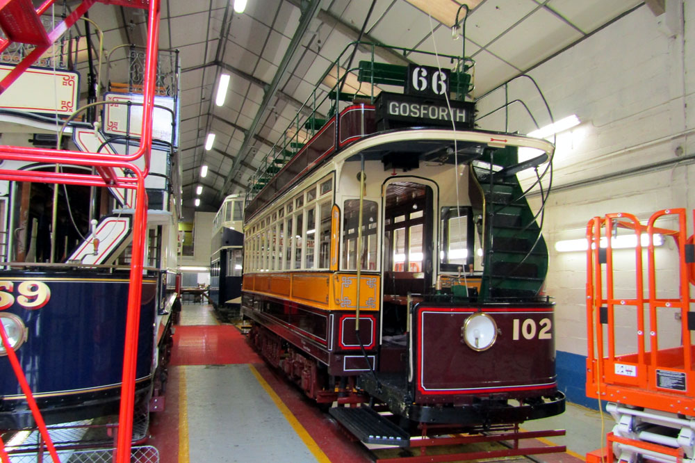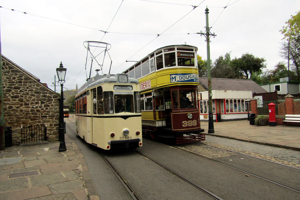 | Although Crich may now be closed for the winter it had remained open until the end of October and in this gallery we take a look at a typical midweek day in mid-October which saw a three tram service in operation plus the Access Tram. On Thursday 14th October the three trams allocated to service were Glasgow 22, Leeds 399 and Liverpool 869 with Berlin 223 006-4 in action for the Access Tram trips. All four cars feature on the tramway and we also have time to take a quick look in the Workshop where Newcastle 102 is seen. |