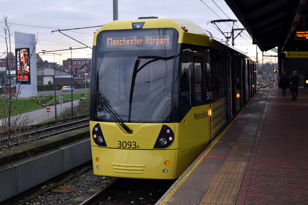 3093 pauses at Cornbrook on 30th December as it works a service on the Airport line.