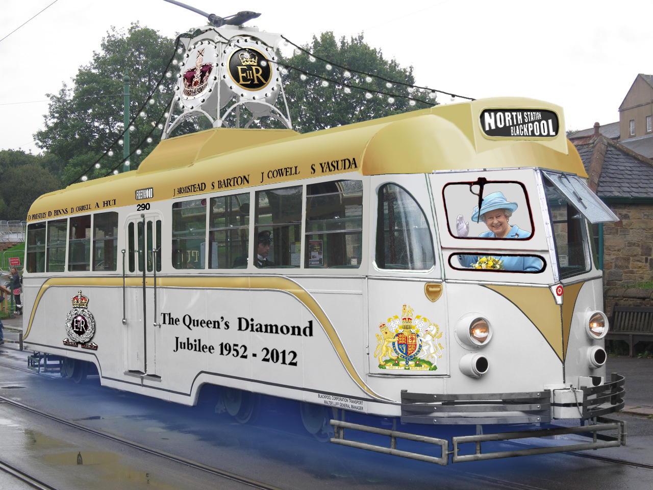 An artists impression of how Brush Car 290 will look when it is completed in its Diamond Jubilee livery for the 2012 Blackpool Illuminations. (Photo courtesey of Fleetwood Heritage Leisure Trust)