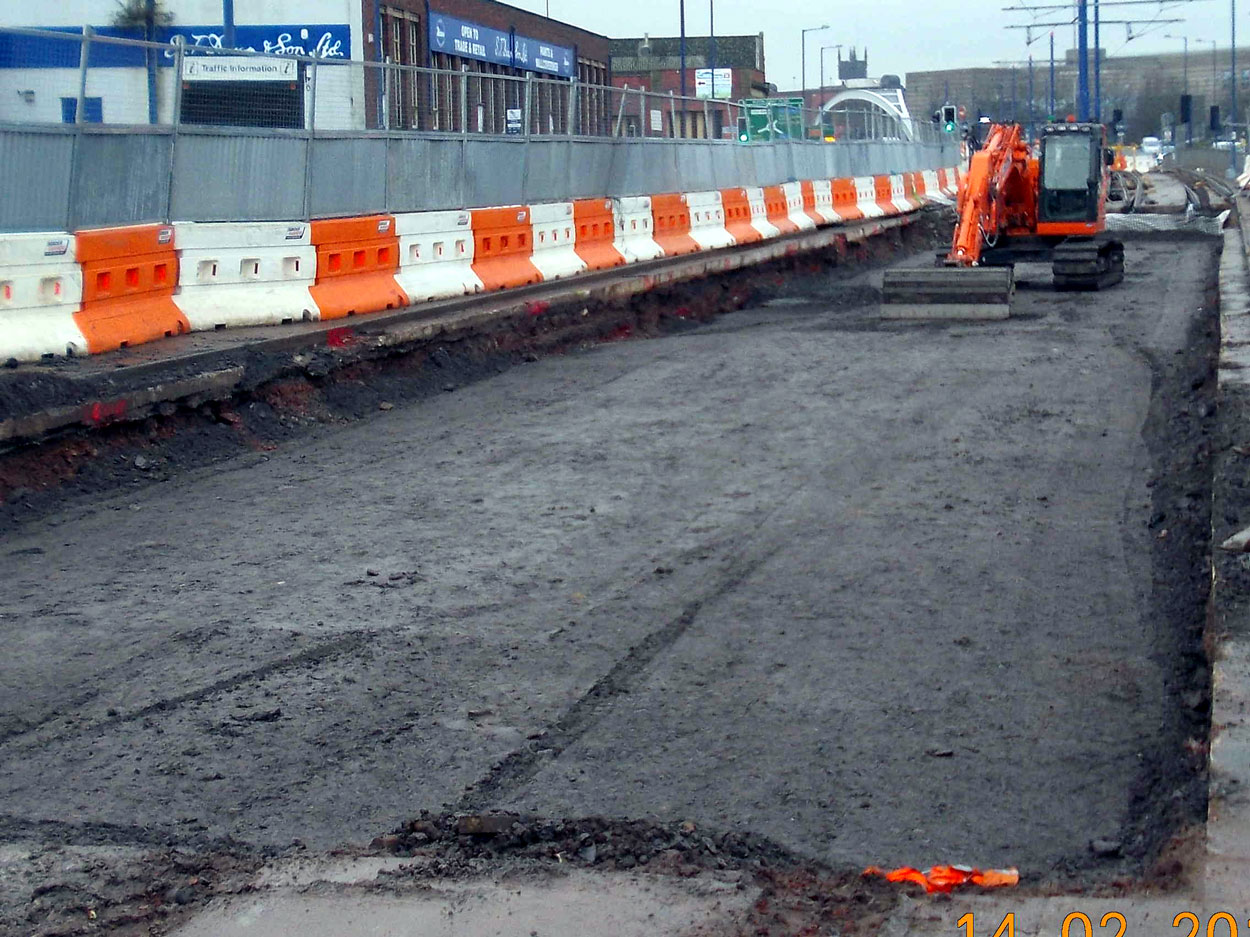 At Steelhouse Lane, with The Royal stop immediately behind, the mine workings subsidence has now been filled in but the new trackbed has yet to be laid.