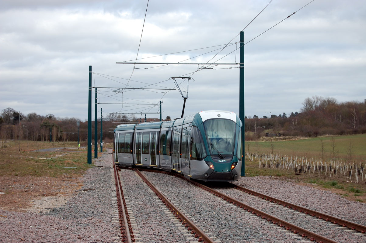 228 uses the crossover at Silverdale (Fairham Brook) the current limit of daytime testing. This photo was taken on 5th March and further images from this day will feature on British Trams Online soon. (Photo by David Beardsell)