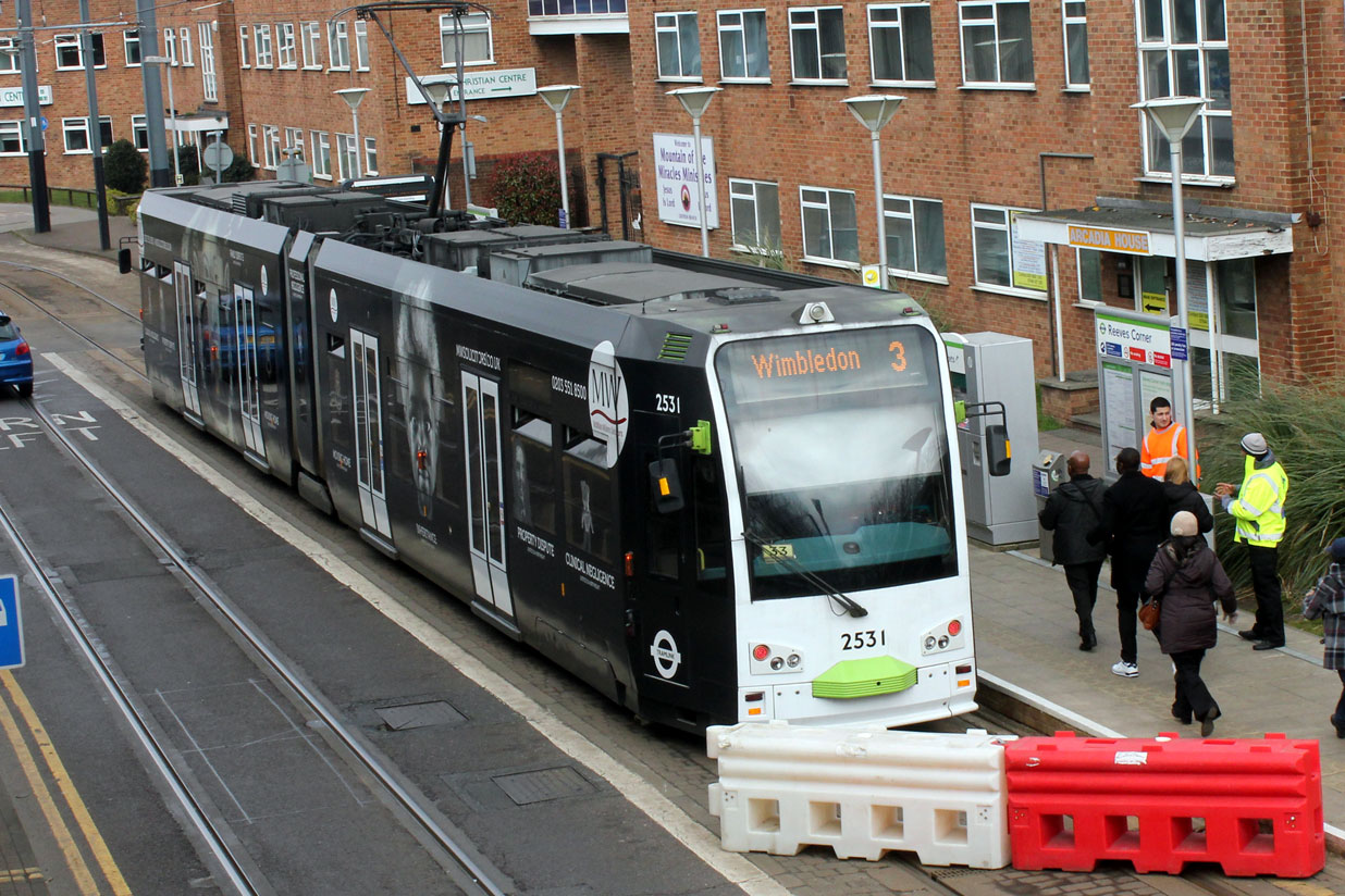 Trams are terminating at Reeves Corner during the blockade. This is 2531 at the temporary terminus on 28th March.