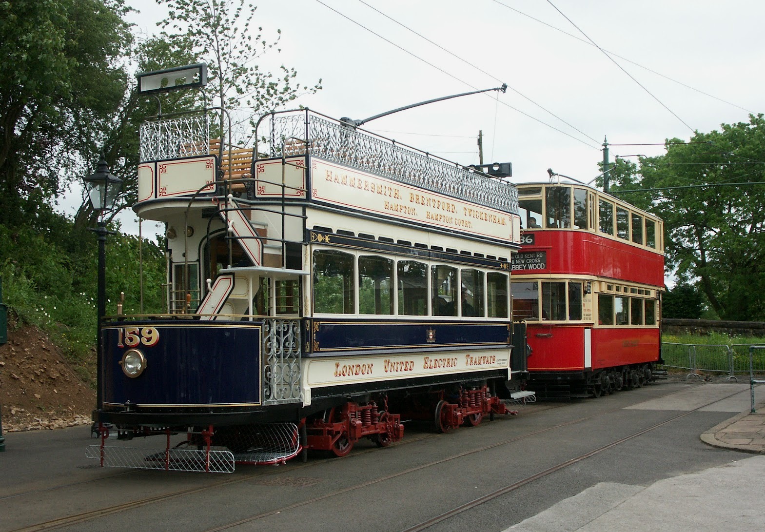 The maginificent LUT 159 stands at Crich Town during a recent test run, with fellow London tram 1622 behind, this being the previous LCCTT-supported restoration. (Photo by Peter Whiteley/Crich Tramway Village Blog)