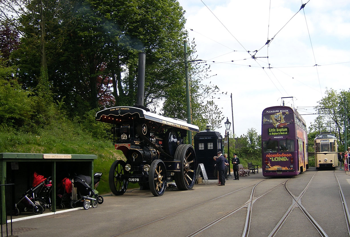 At Town End terminus Blackpool 762 features alongside Berlin 233 006-4 and a visiting steam engine.