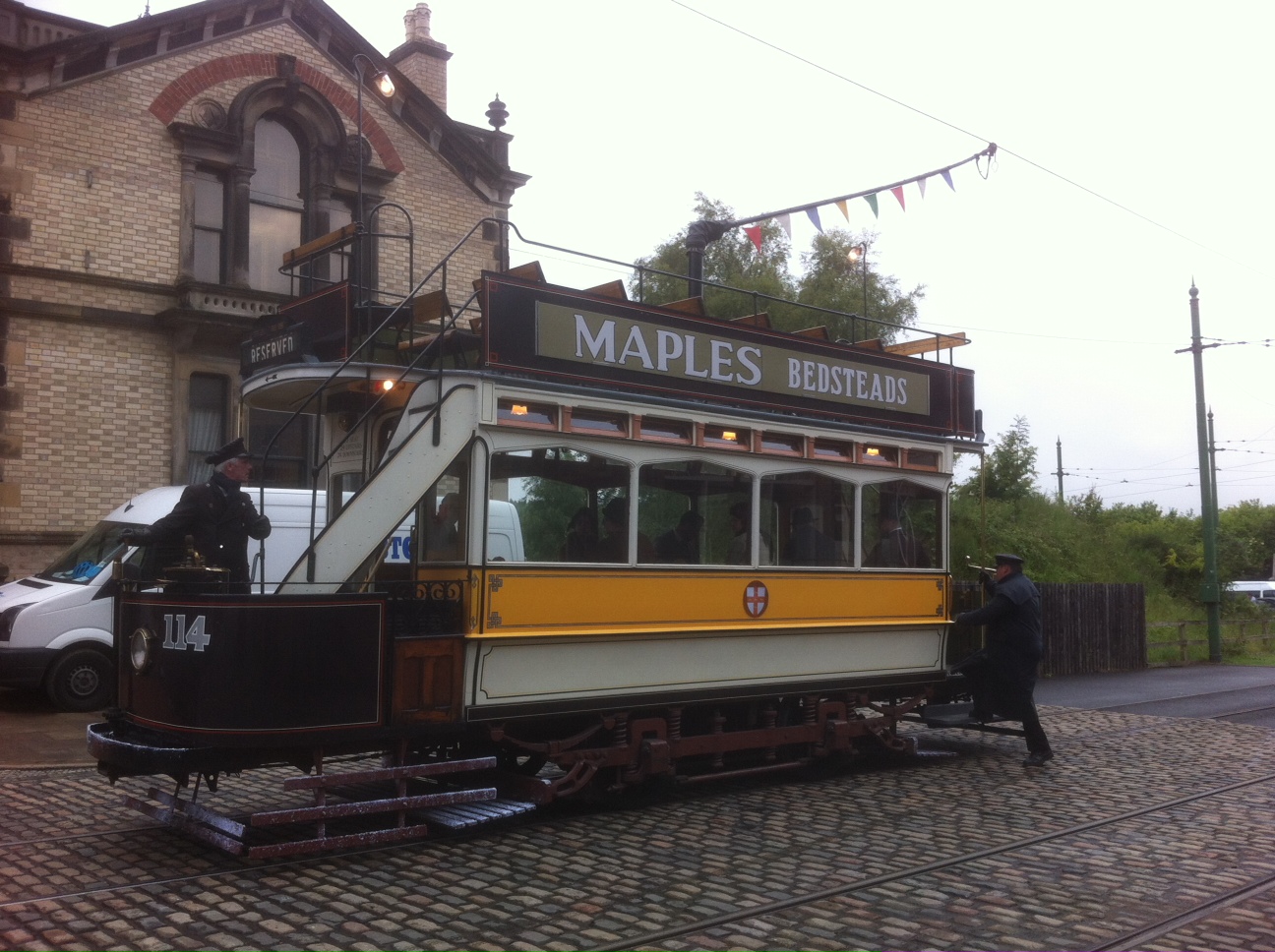 Newcastle (or is it York?) 114 poses outside the Barclay’s Bank during evening filming for Downton Abbey on July 13th. (Photo courtesy of the Beamish Transport & Industry Blog)