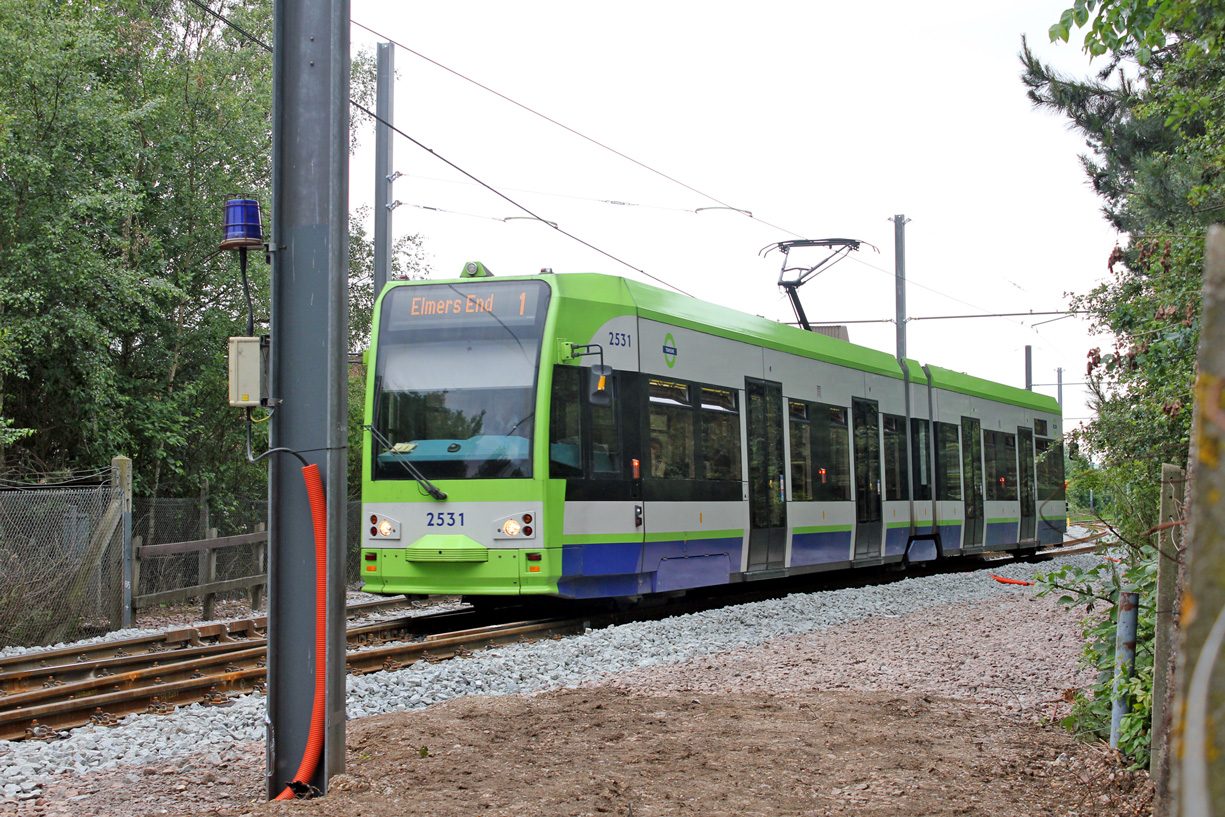 2531 is seen in the new Elmers End loop on 23rd June 2012 whilst operating a line 1 service. (Photo: Ian Buck)