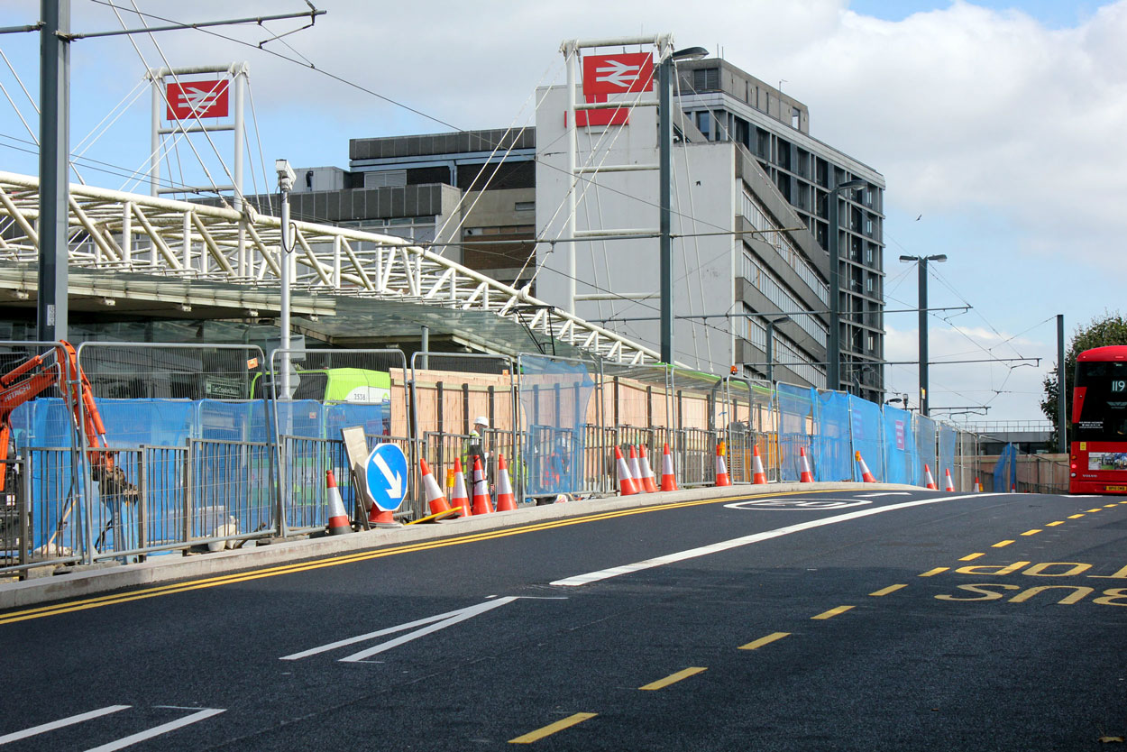A view from the other side showing the barriers surrounding platform 3 during the works.