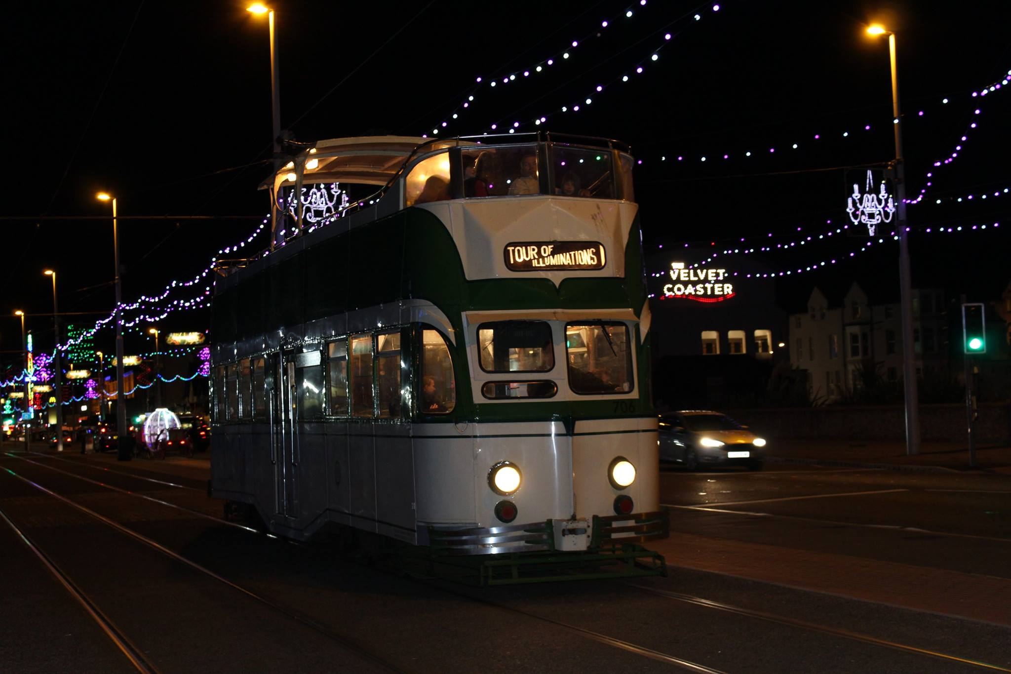 ‘Princess Alice’ 706 arrives at Pleasure Beach with one of the many illumination tours it has worked so far this year. Notice the recently fitted traditional style destination blinds fitted to this popular tram.