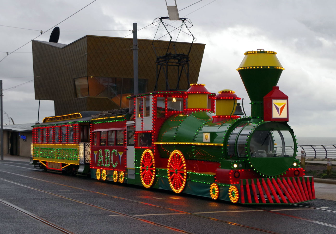 A wet and windy Blackpool Promenade is the scene for the Western Train as it awaits some visitors. (All Photographs by Ken Walker)