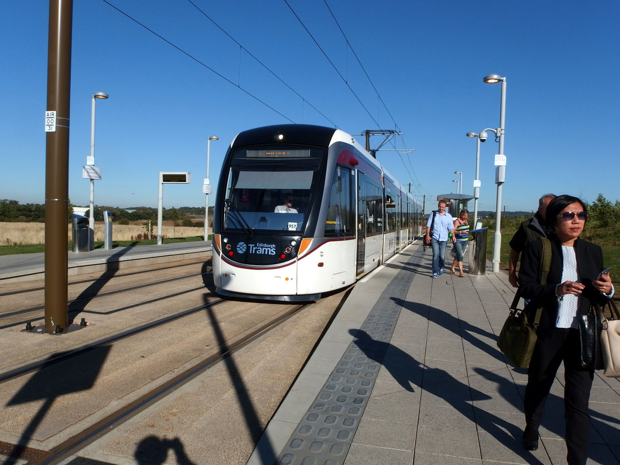 The Edinburgh Trams success story is really starting to take off now with more passengers than ever now be carried on the line. The Park and Ride site at Ingliston has also seen a 60% increase in usage in the past 12 months. It is at that very stop that we see 253 on 1st October 2015 running a service through to the Airport. (Photograph by Keith Chadbourne)
