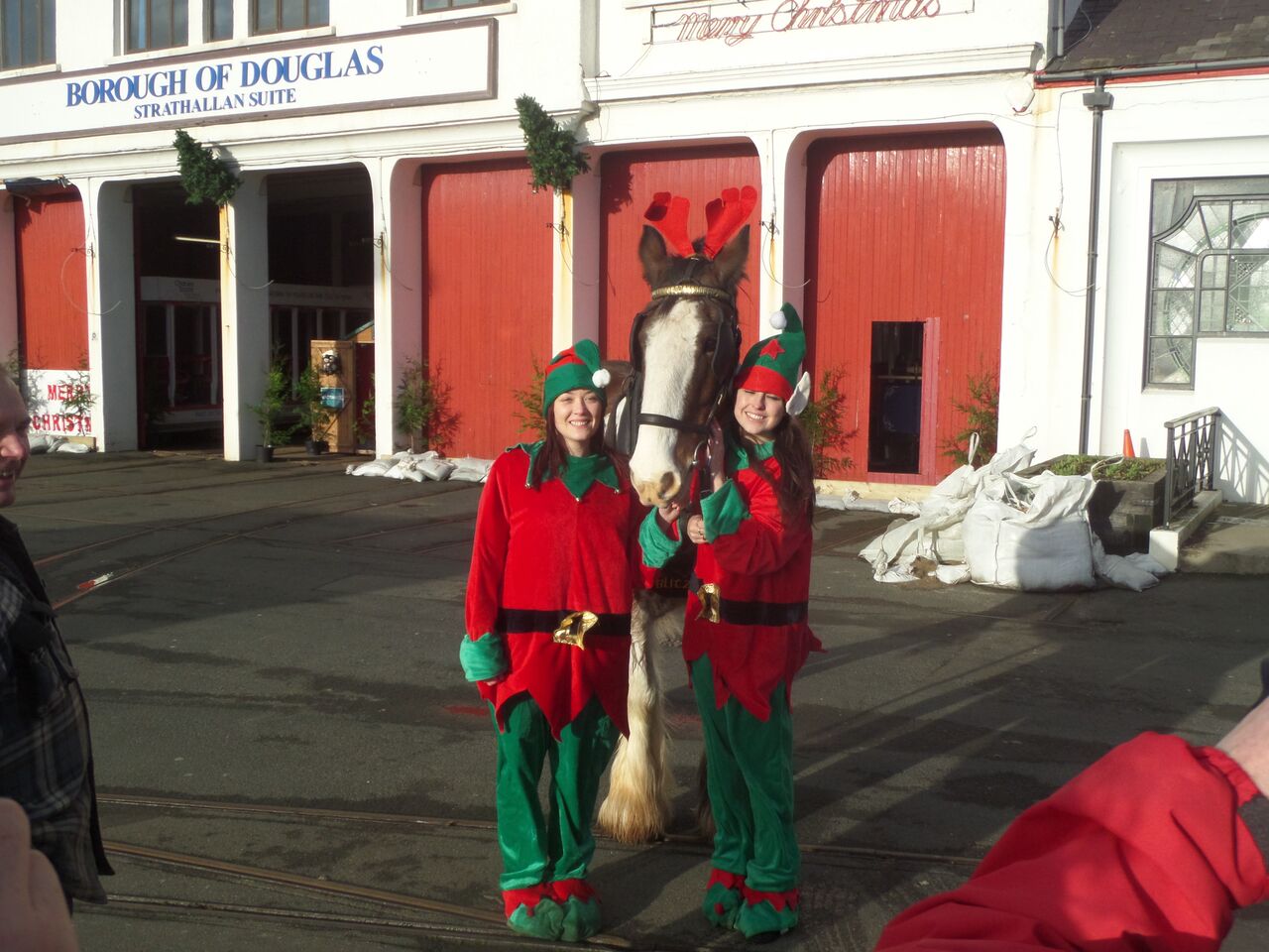 Two of Santa’s elves pose with Blitzen.