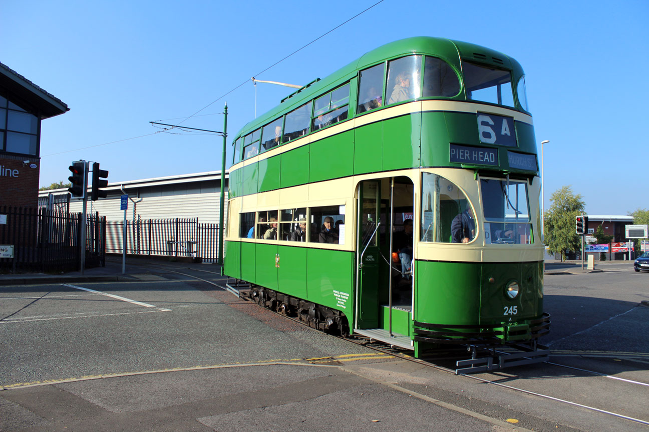 Tramcar (Traditional) of the Year 2015 Liverpool 245 is seen at the Birkenhead Heritage Tramway on 4th October.