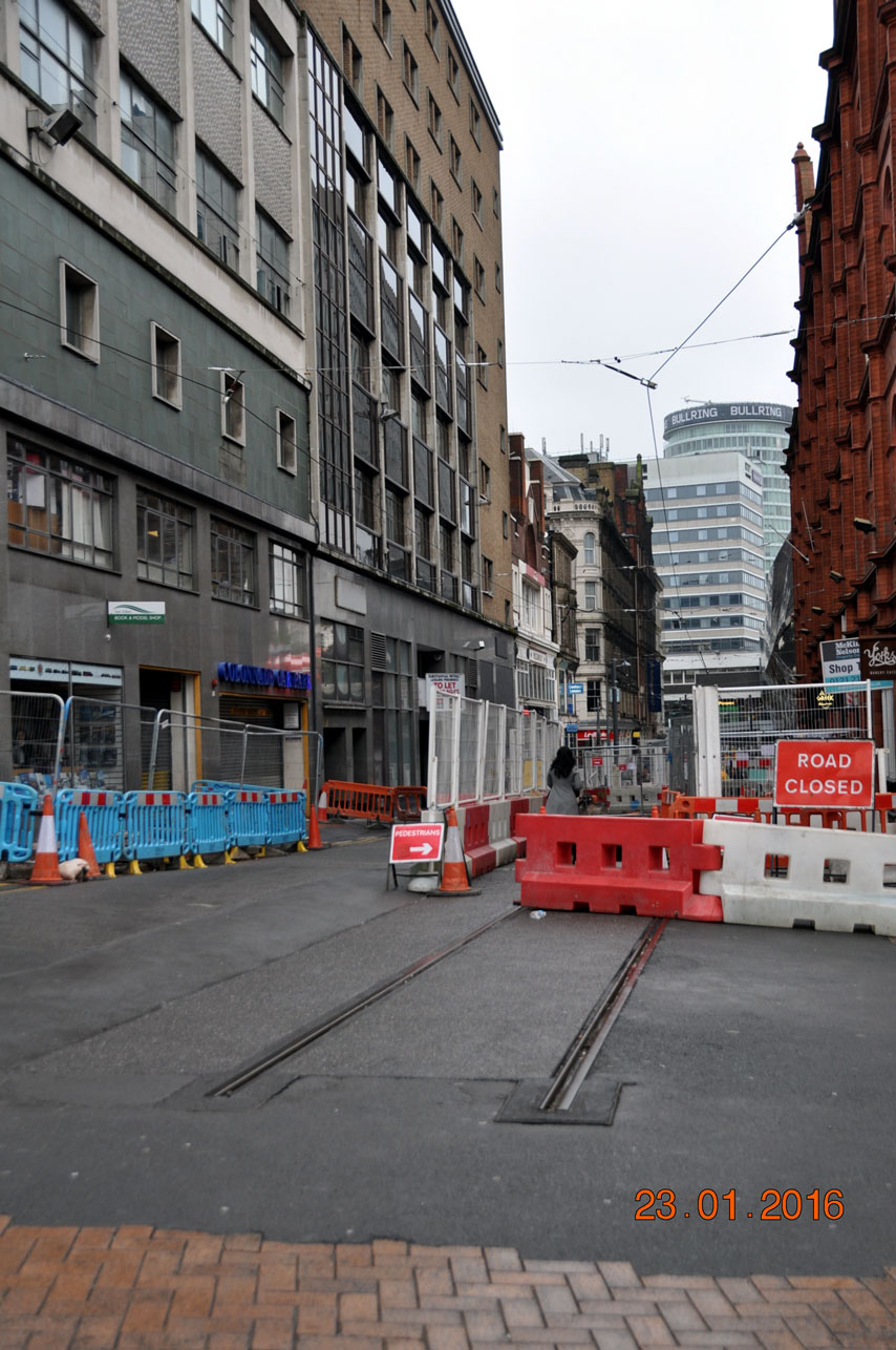 The end of the line! This is the junction with Pinfold Street where the tracks end…for now. (All Photographs by Ken Jones)