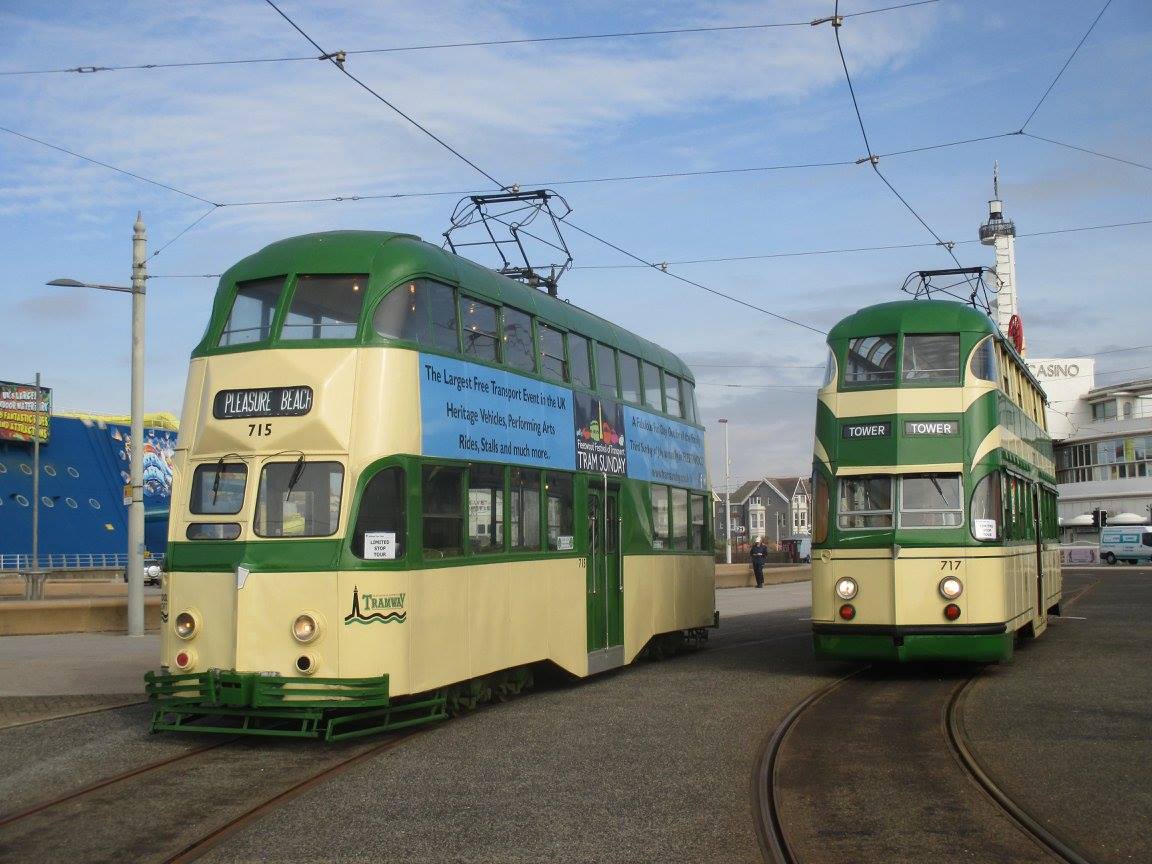 Balloons 715 and 717 meet at Pleasure Beach on a typically bright March day, Friday 6th, whilst employed on the ‘blue’ heritage service.