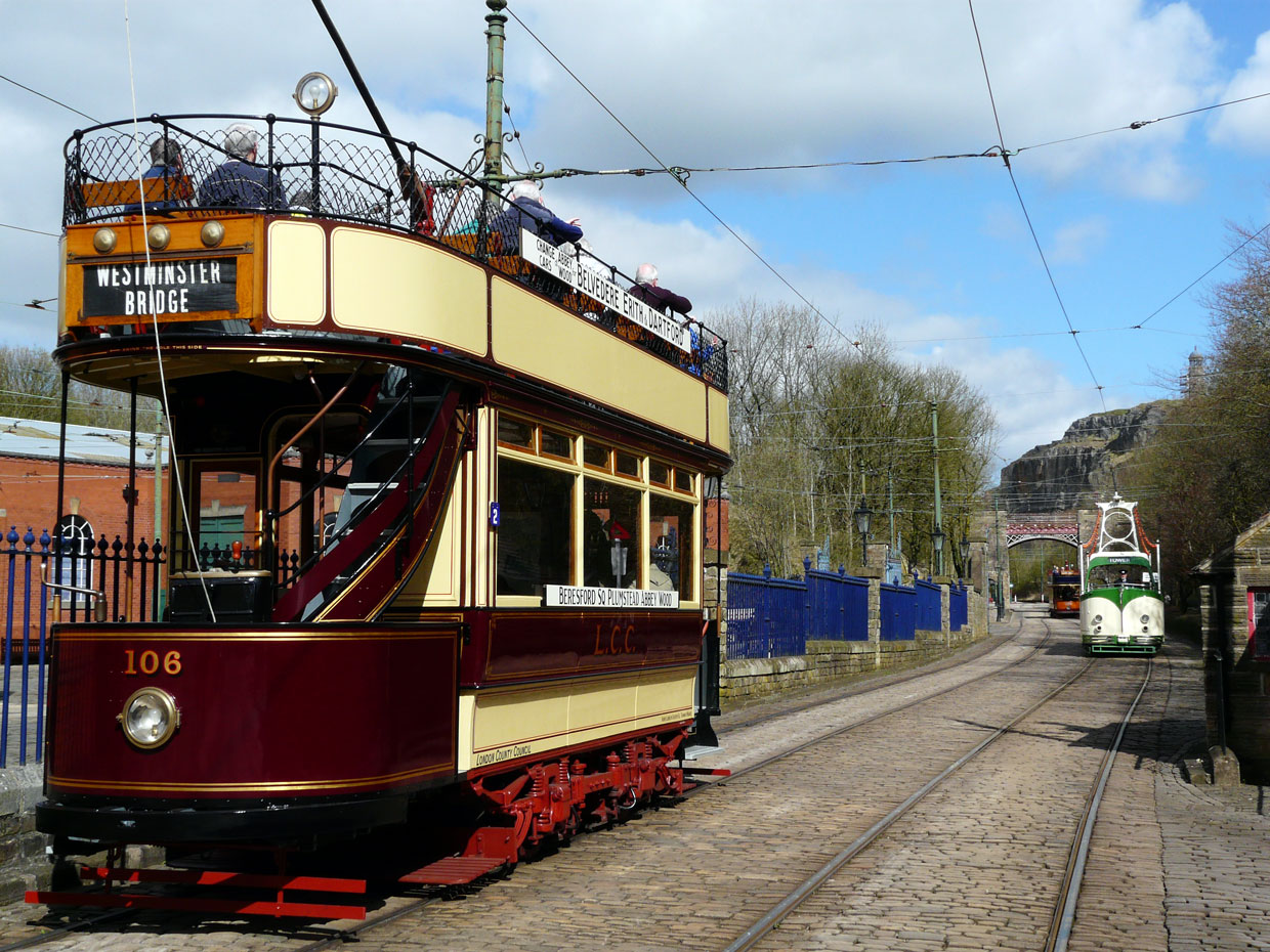 All three trams are seen in this first image with 106 and 236 in the foreground and 1068 sneaking in at the back.