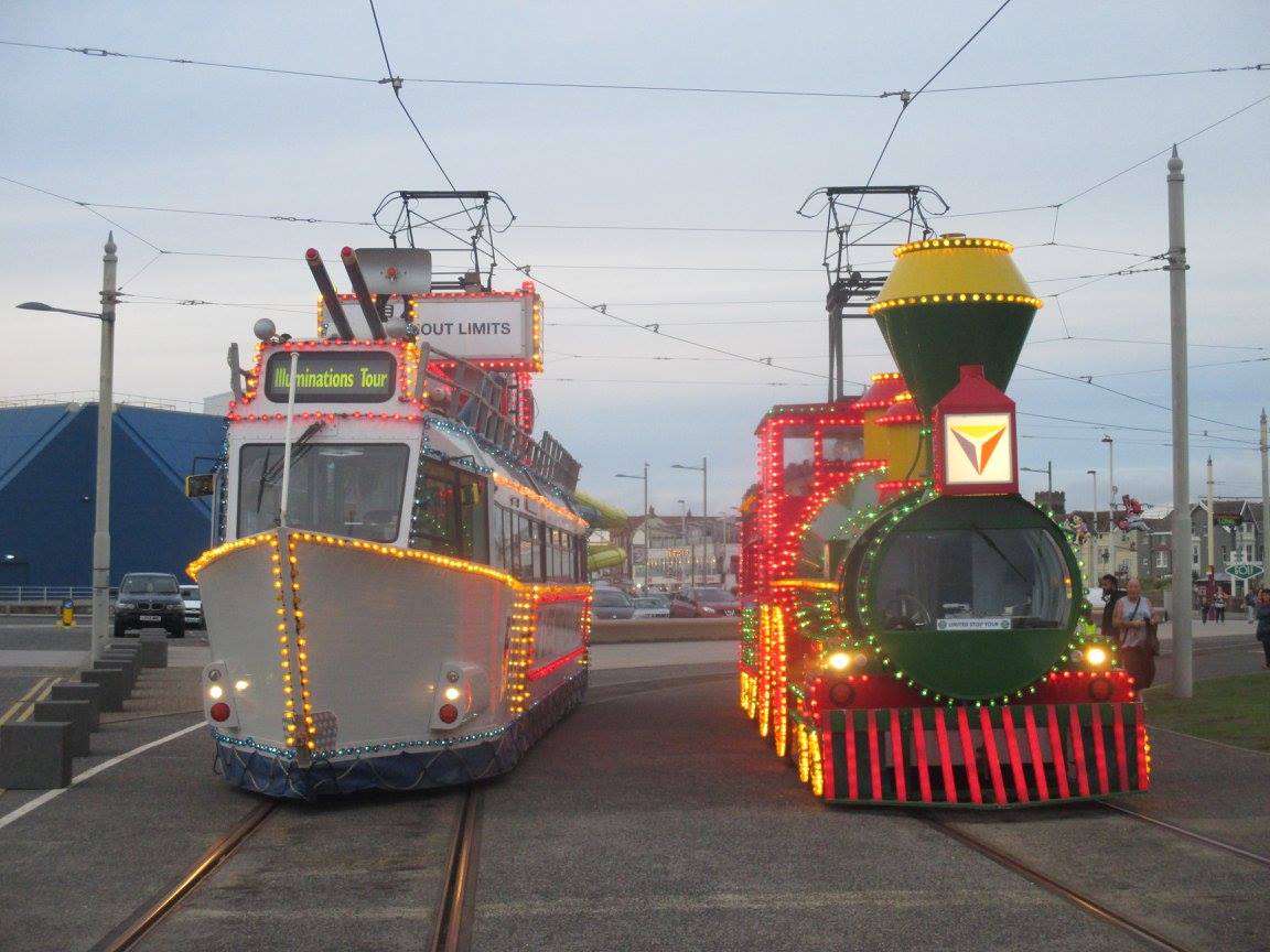 The Frigate and Western Train stand side by side at dusk on the loops at Pleasure Beach, in what will doubtless become a very familiar sight over the next few months. (Photo by Rob Bray)