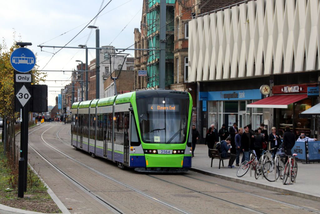 2564 approaches East Croydon working route 4 from Wimbledon to Elmers End on 26th October 2016. (Photograph by Tony Sullivan)