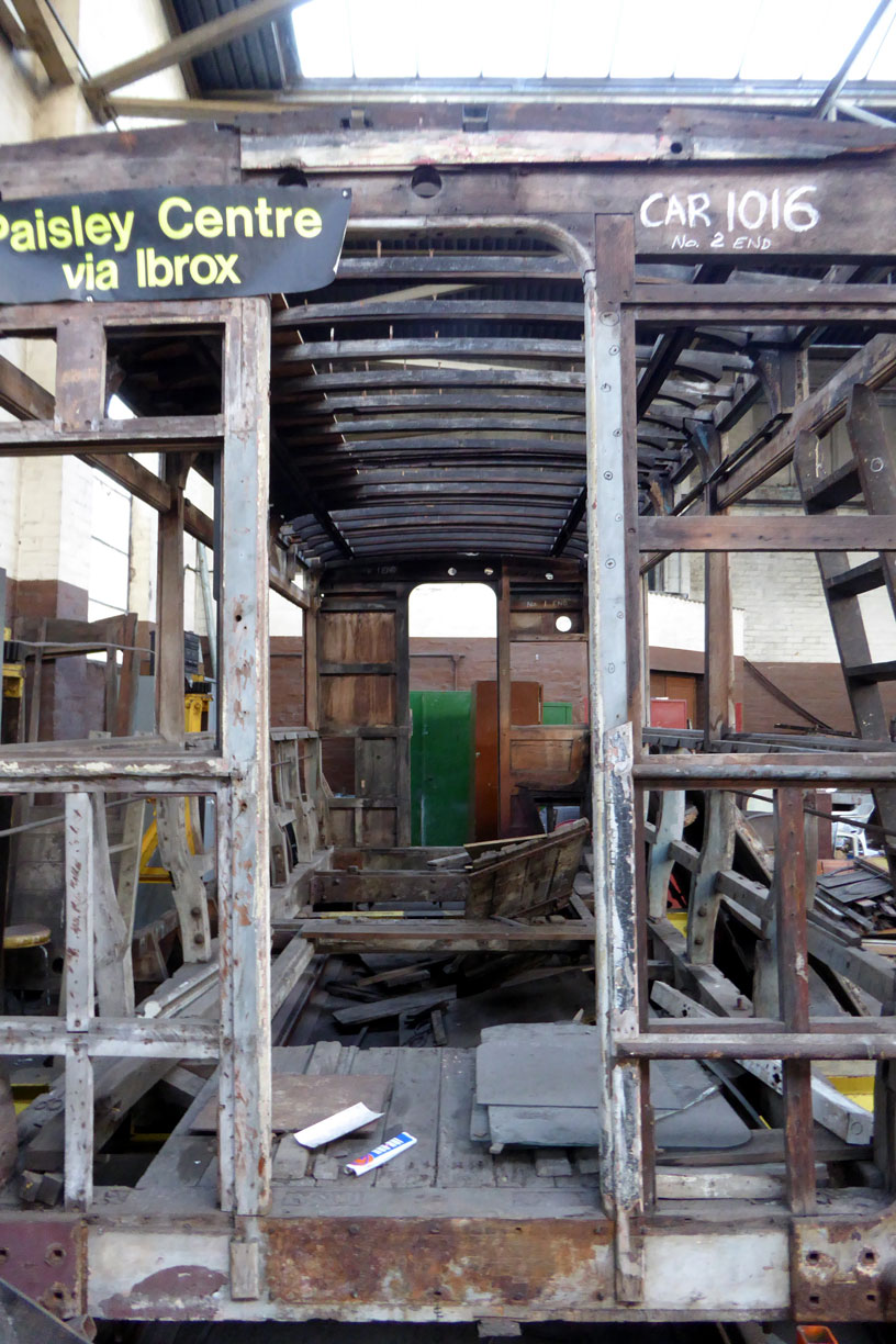 The current state of 1016 is seen in these three photos taken before the tram was prepared for movement to its new life in Blackpool. (All Photographs by Stuart Little)