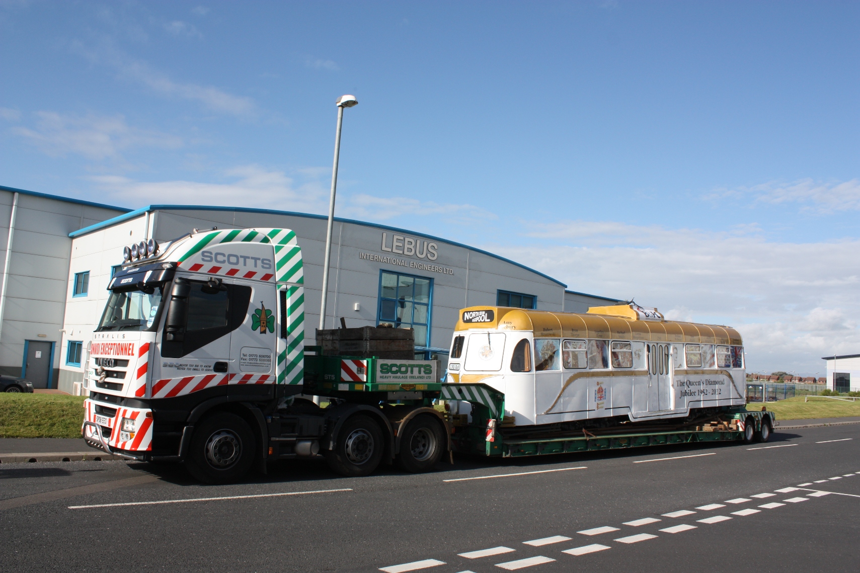En route to Blackpool promenade, 290 pauses near the illuminations depot at Squires Gate. (Photo by Andrew Blood)