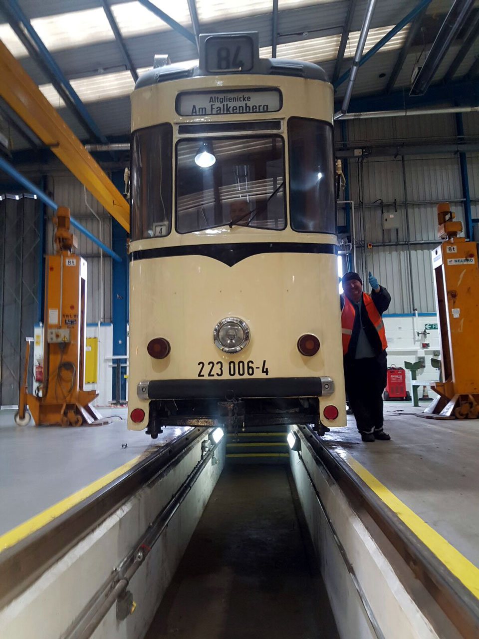 Another look at the tram inside the workshops.