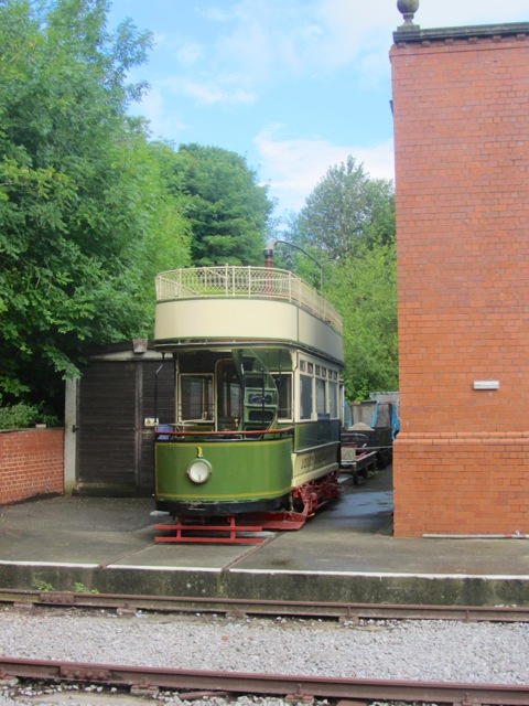 A very rare move into daylight for Derby 1. It is seen here alongside the Exhibiton Hall, a position for a tram that is a rarity in itself. (Photo: Jack Gordon/Tramways Monthly)