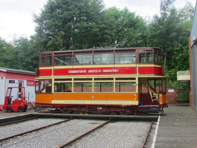 The reason for all the shunting – to get Glasgow 1115 out of the Exhibition Hall so it can play a role in the Glasgow 50 event. This view shows it on the Traverser. (Photo: Jack Gordon/Tramways Monthly)