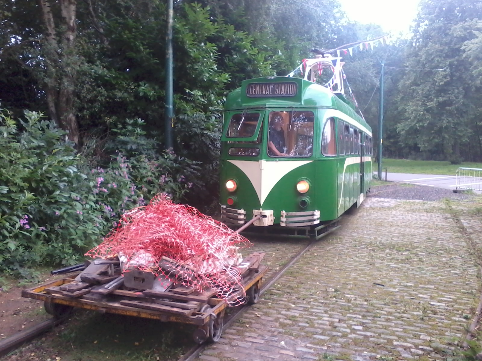 The Brush car was also used to haul this trolley laden with the workmens’ equipment, as seen here at the old Lakeside terminus. (Photo by Joe Savage)