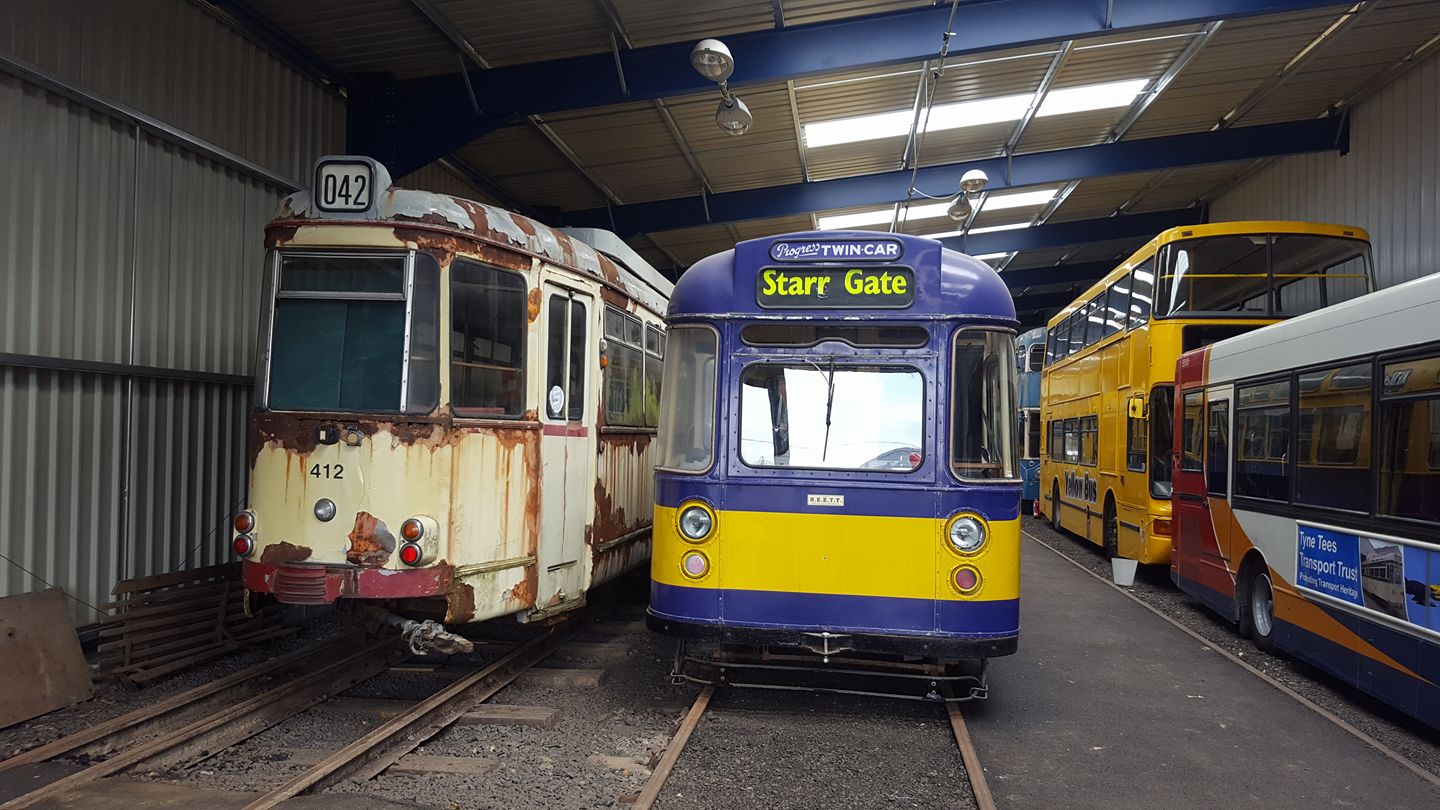Another view of Krefeld 412, now safely tucked up in its new home with Blackpool trailer car 684 alongside for company. Note that the back end of the German car is now facing the front of the depot. (Photos courtesy of the North Eastern Electrical Traction Trust)