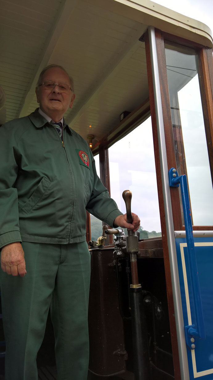 David poses for the camera on board the newest tram in the fleet, no. 15. (Both Photographs by Mike Poole)