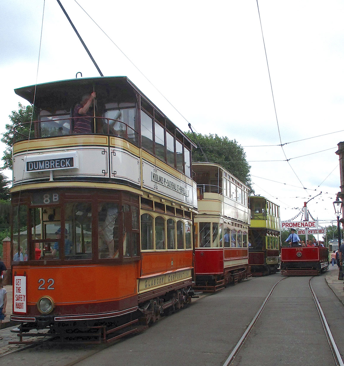 Three Balcony cars in a row with Glasgow 22 behind Blackpool 40 and Chesterfield 7 at Stephenson Place. Blackpool 166 passes with a northbound service on 16th July.