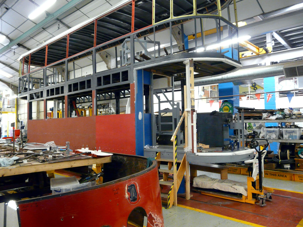 One end dash panel of Bluebird waits alongside the main part of the tram. (All Photographs Gordon Burch/Crich Tramway Village)