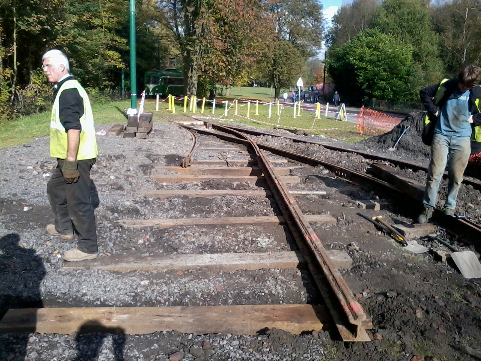 Another length of rail is seen being laid down before it is secured in place, with the new sleepers already in situ.