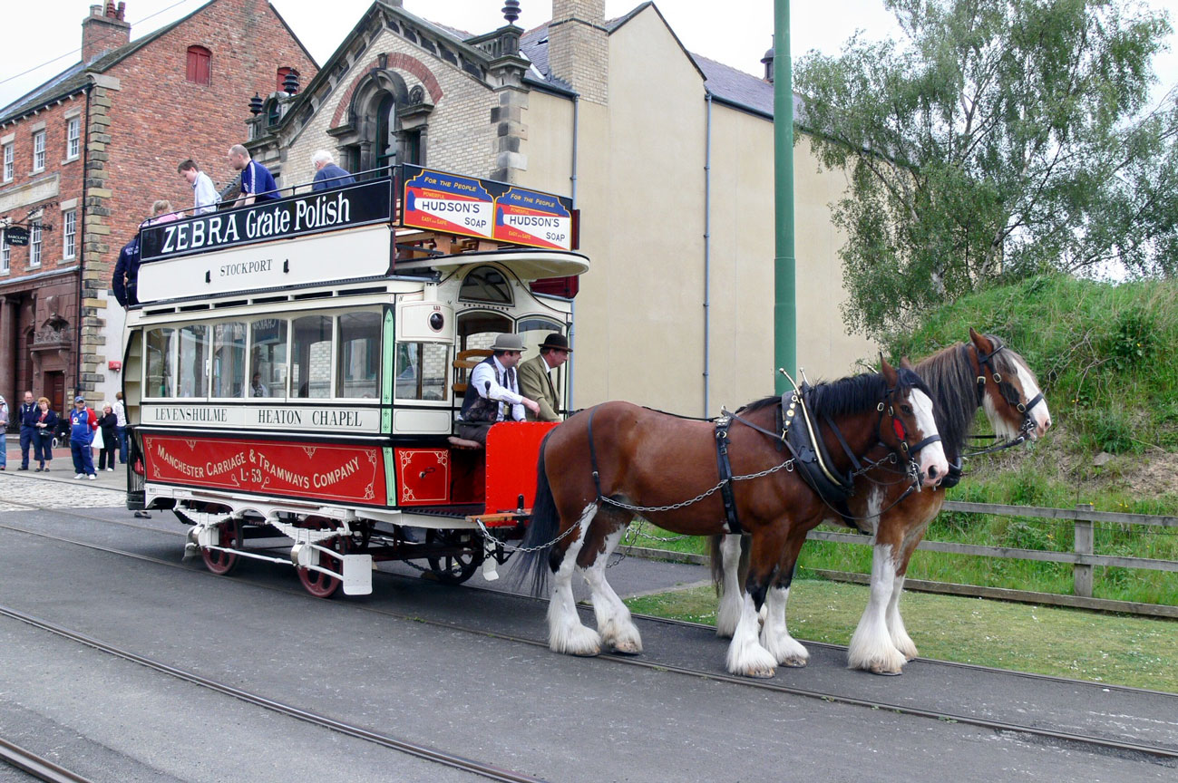 On its first visit to Beamish in May 2009 passengers disembark from L53 whilst the two horses wait.