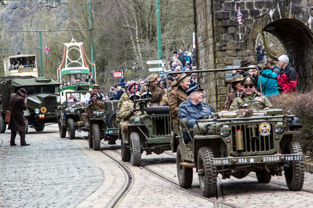 Blackpool 236 and Blackpool 40 get caught up amongst more military vehicles.