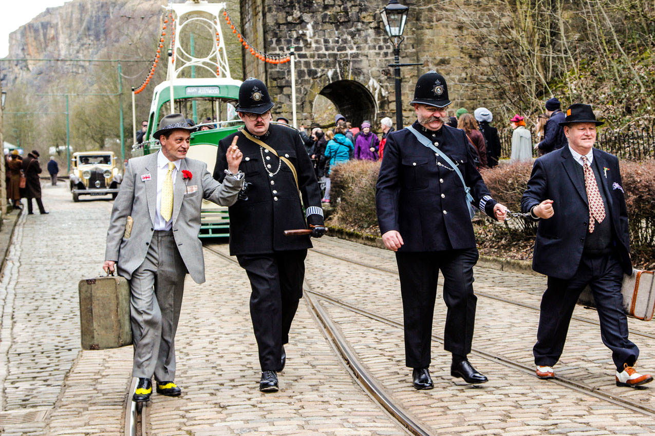 Any misdemeanours were quickly dealt with by the local bobbies! 236 once again provides the backdrop. (All Photographs by Crich Tramway Village)