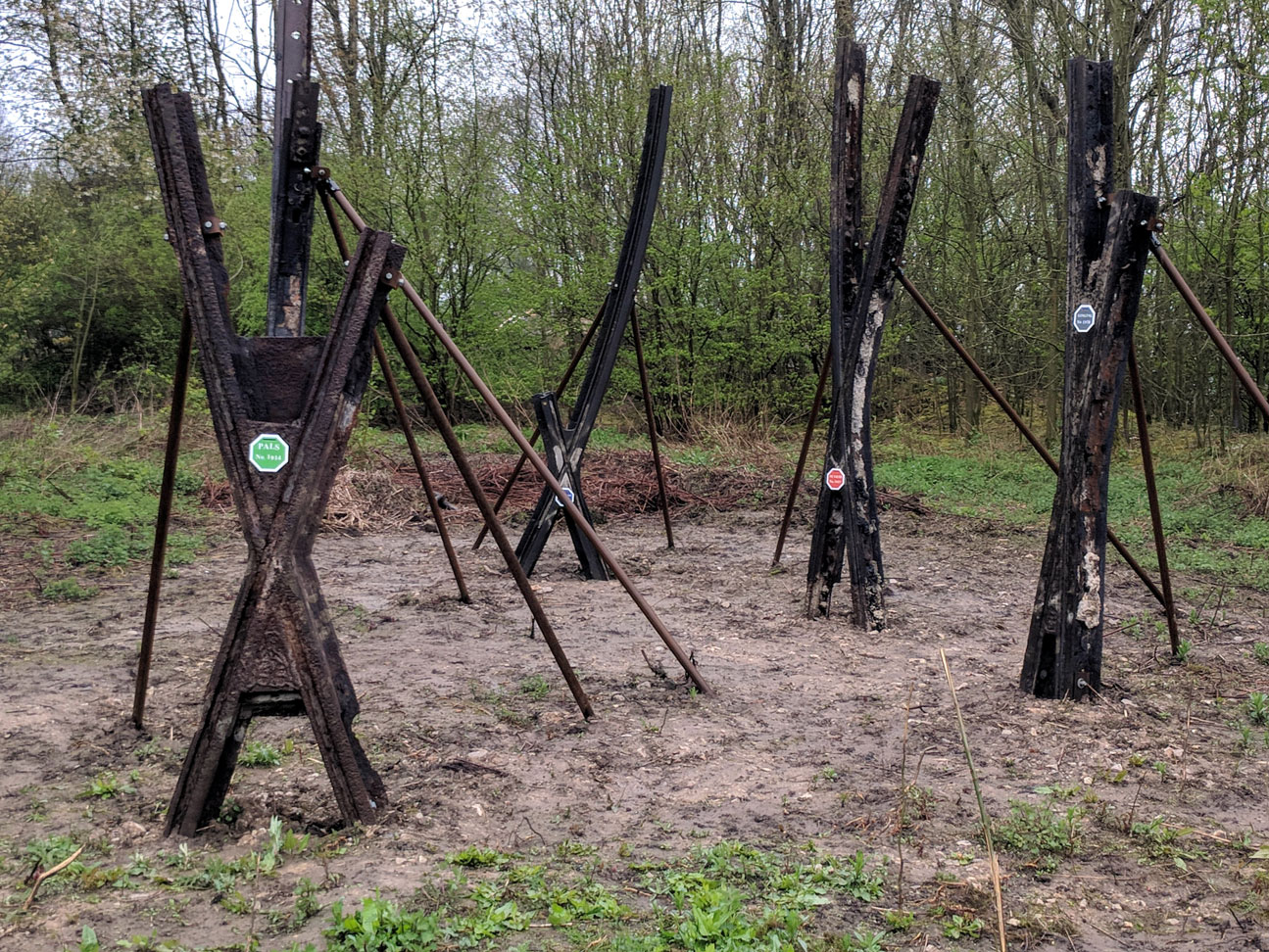The sculptures in place. (Photograph by Ian Rigg, courtesy of Crich Tramway Village)