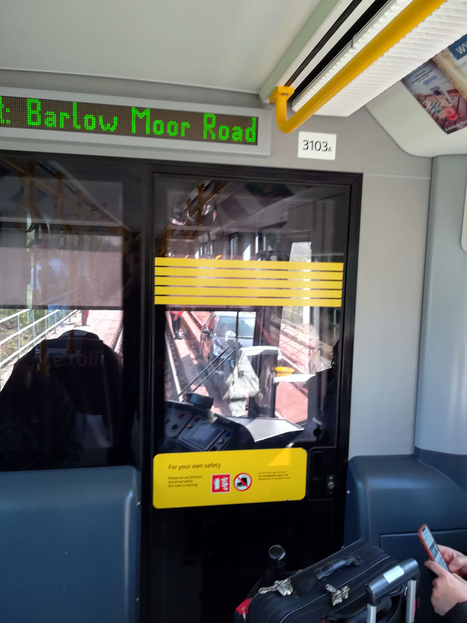 The view from onboard 3103 showing the car on the rails and Metrolink officials in attendance working out how to remove it!