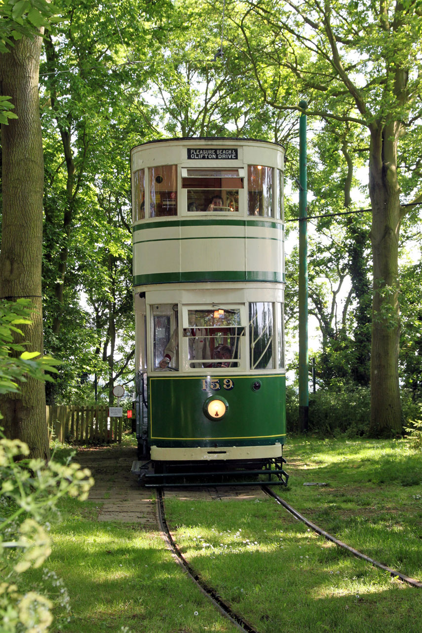 As well as Sheffield 513 the tram service was maintained by Blackpool Standard 159. In this photo we see 159 at Woodside terminus.
