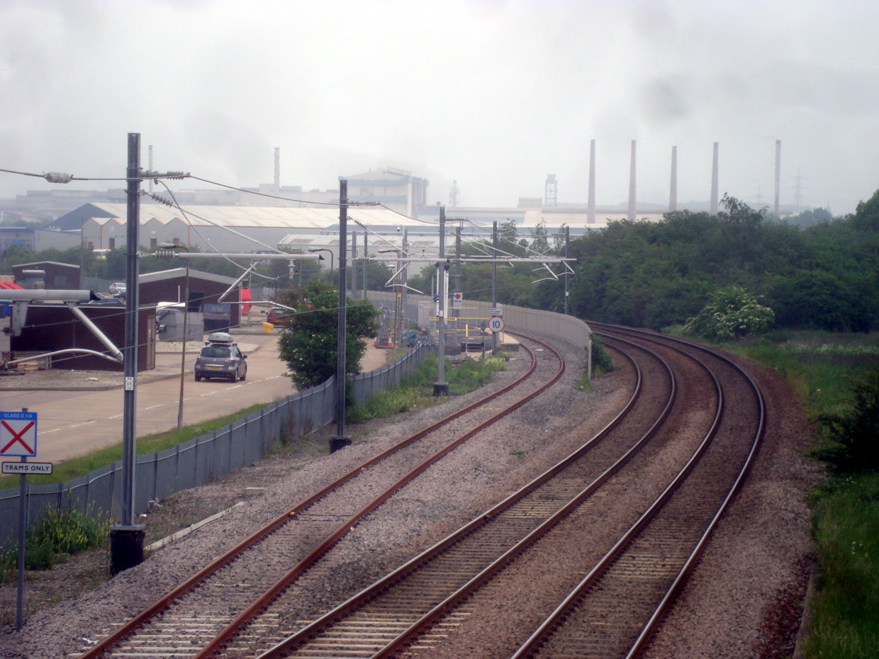 Looking along the line with the tramstop at Parkgate visible on the left whilst the Network Rail double track line curves around. (All Photographs by Stuart Cooke)