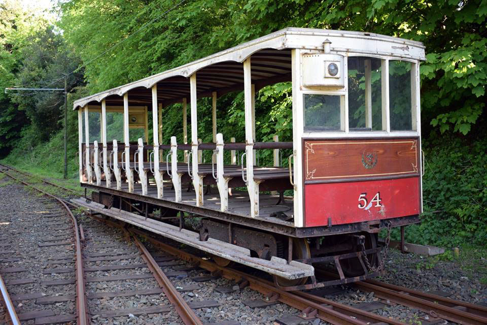 54 stands outside Laxey Car Sheds following its recent move for a start to be made on returning it to service for the first time in nigh on 50 years. (Photograph courtesy of Manx Electric Railway Online)