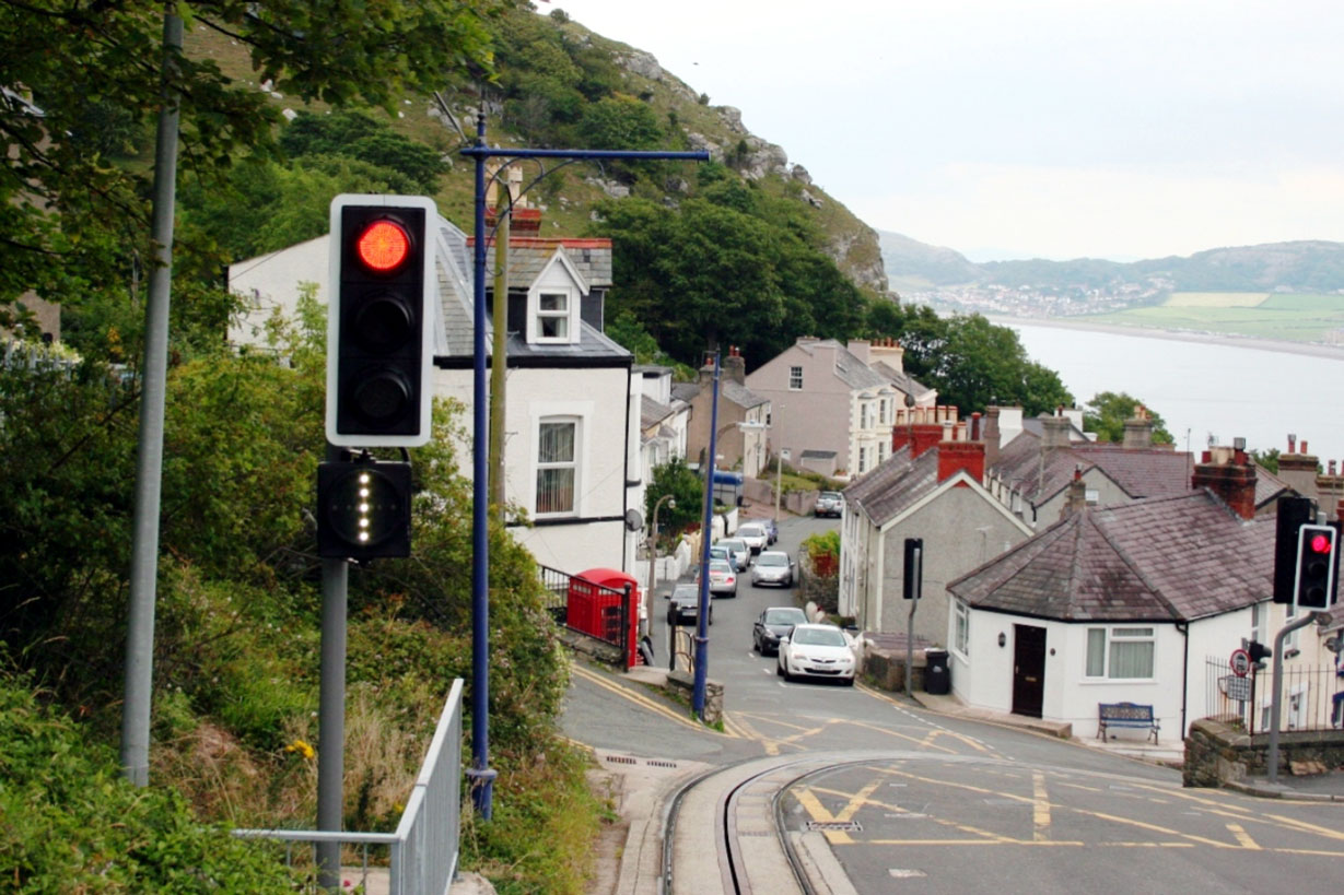 Another view from a lower section car looking towards the town. This location is Black Gate with a tramway signal in place.