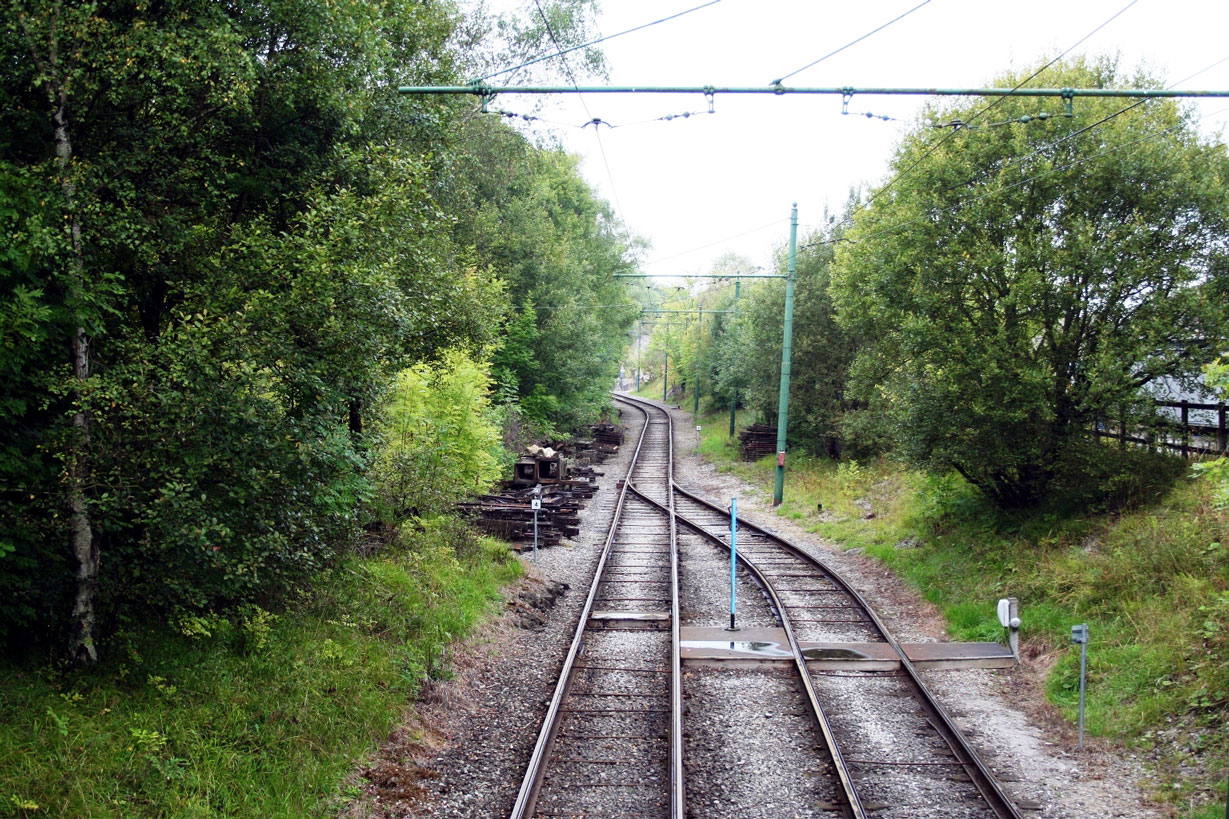 Where the double track changes to single with the blue pole in th centre of the shot being where the single line token is placed.