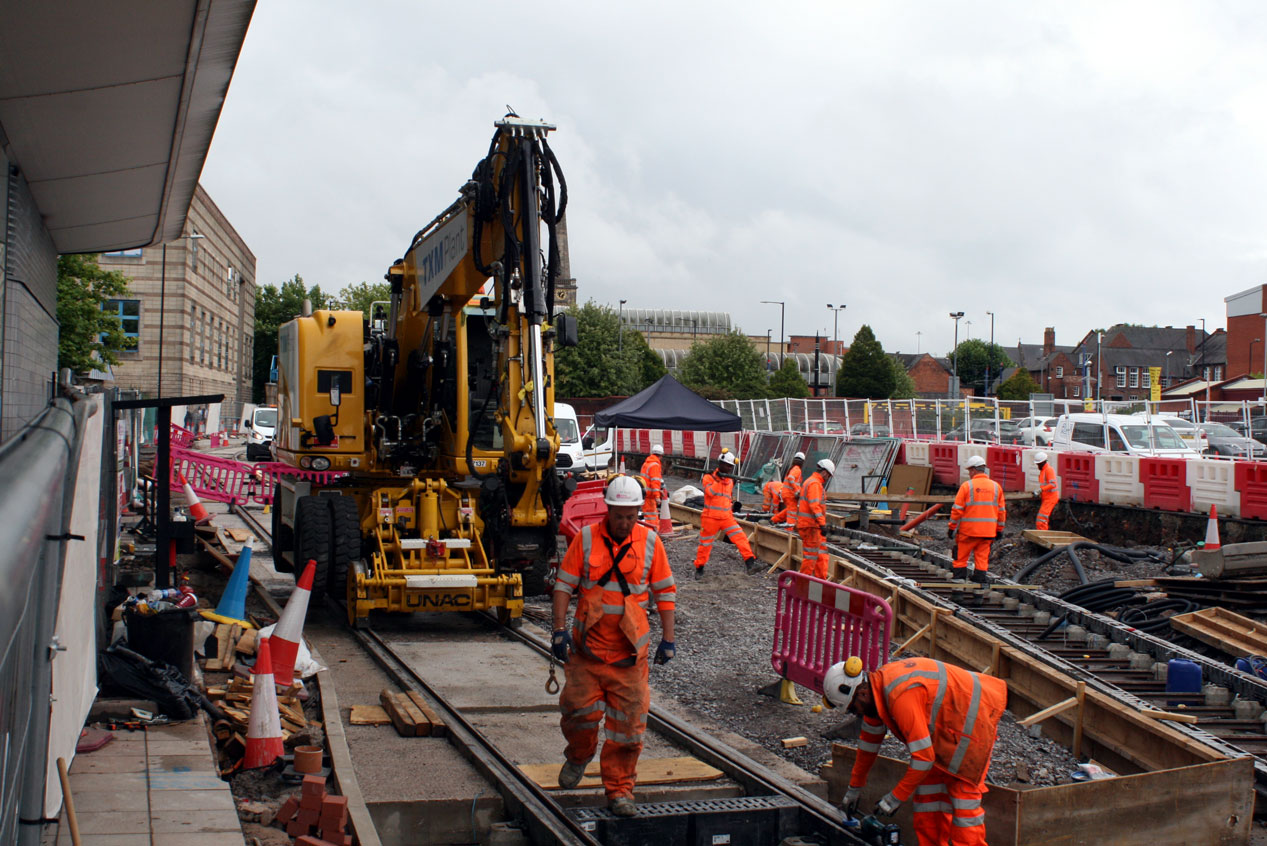 Although trams won’t be running on the extension until 2020 that doesn’t mean that no rail vehicles will run on the line. Outside the bus station this road rail vehicle is in use to help with the construction. (All Photographs by Martin Miller, 10th August 2018)