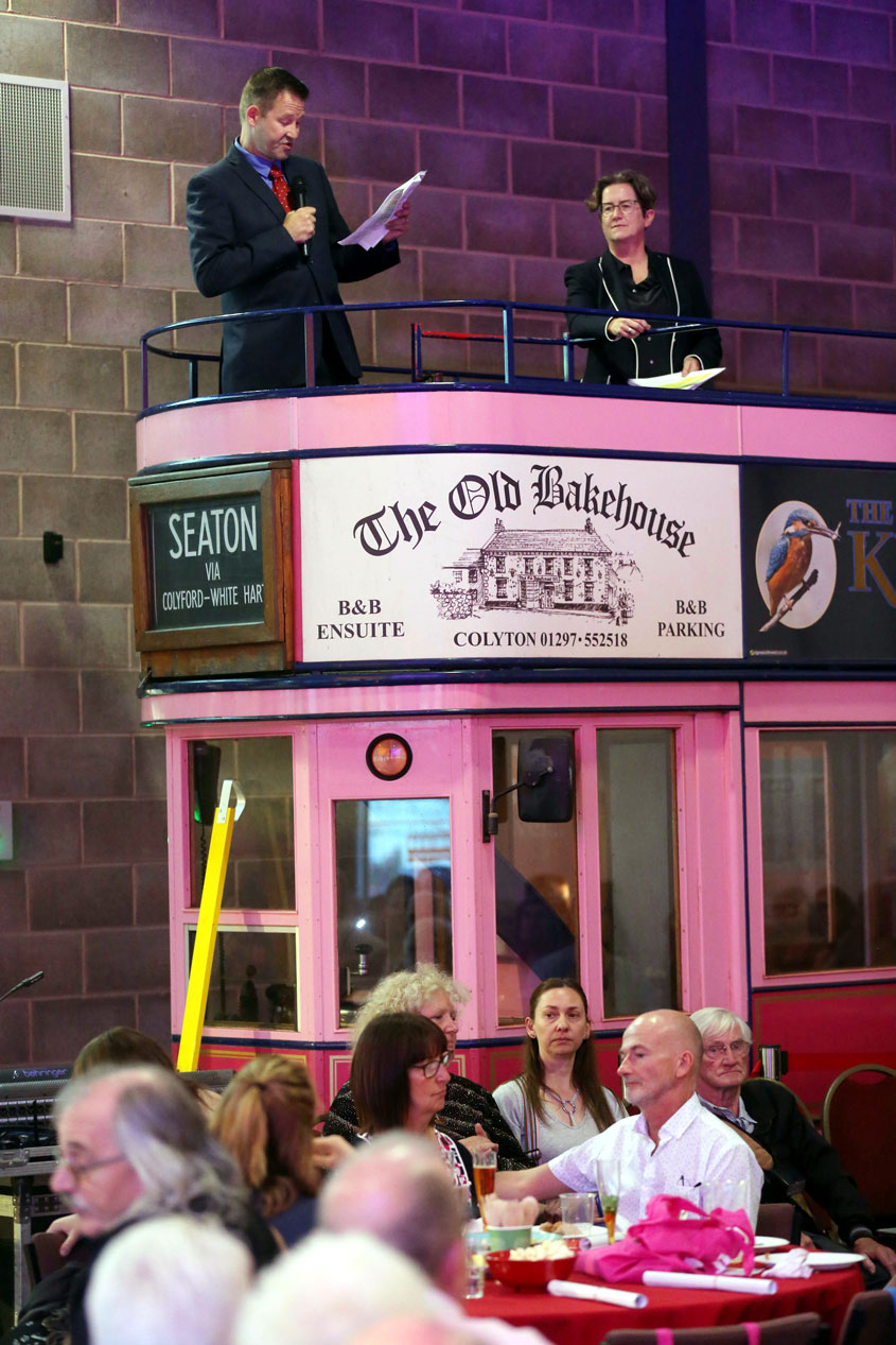 Bruce Warnes and Jenny Nunn on the top deck of 11 give speeches at the opening.