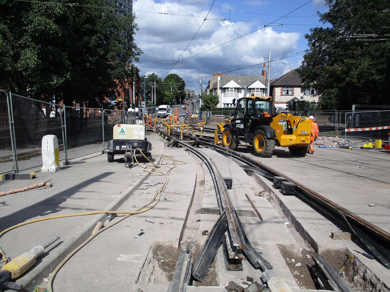 Immediately beyond the stop at The Forest and work was well underway to replace the track as shown in these images from Saturday 25th August. The new outbound track is waiting to be laid here.